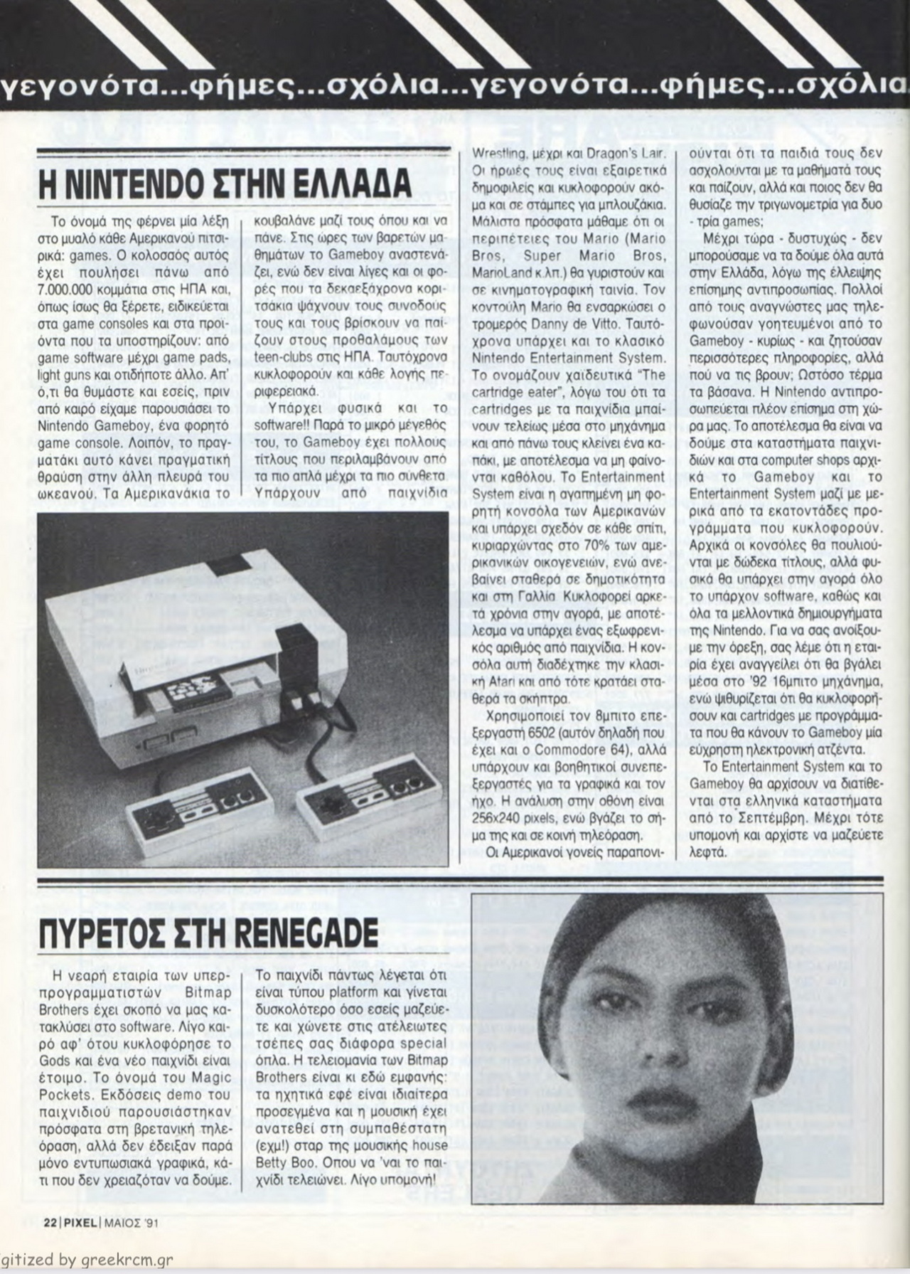 Μάιος του 1991 λοιπόν και η ανακοίνωση της έλευσης επισήμως της Nintendo στη χώρα μας είναι γεγονός, καθώς αναγράφεται σαν είδηση στο τεύχος 77 του περιοδικού Pixel (φωτο)