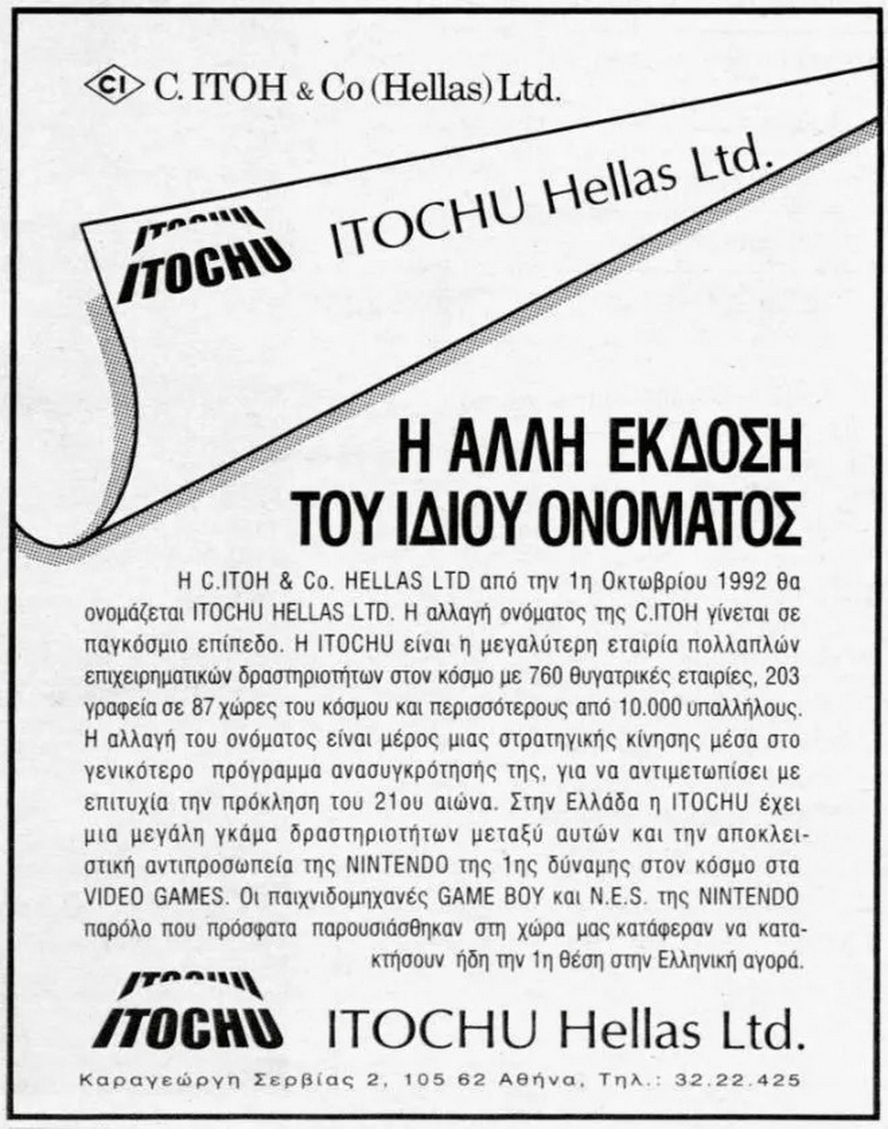 Περιοδικό Pixel και πάλι, 1/10/1992 και η μετονομασία της C.Itoh σε παγκόσμια κλίμακα είναι γεγονός, με το νέο όνομα Itochu που οι περισσότεροι είναι οικείοι στο άκουσμα του.