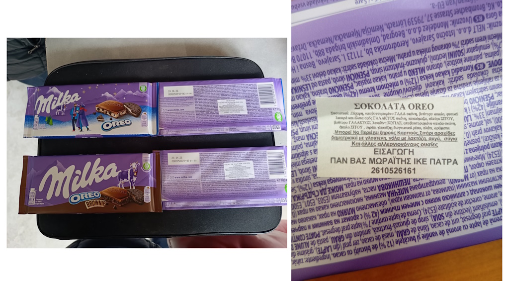 Συγκεκριμένα πρόκειται για τα προϊόντα «Milka σοκολάτα oreo» των 100 γρ., με ημερομηνία ανάλωσης κατά προτίμηση πριν από 24.06.2026 και «Milka σοκολάτα oreo Brownies» των 100 γρ., με ημερομηνία ανάλωσης κατά προτίμηση πριν από 28.04.2026.