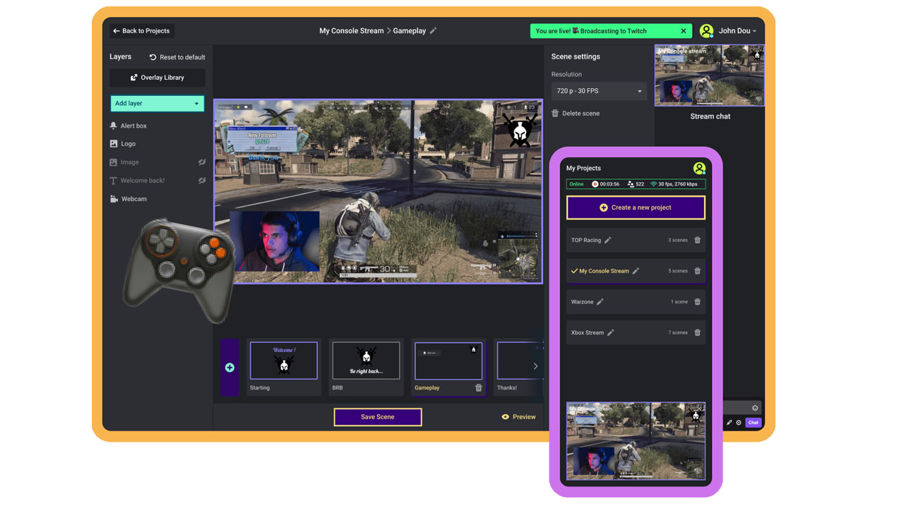 Twitch και Streamlabs συνεργάζονται περαιτέρω για να βελτιώσουν τα streams των παικτών που γίνονται από Xbox, έτσι ώστε να μην απαιτείται καν κάποια capture card. Η web-based υπηρεσία Streamlabs Studio θα επιτρέπει στους streamers να φτιάχνουν τα πάντα με widgets και overlays μέσα από ένα σχετικό panel και όλα να είναι έτοιμα για ακόμη καλύτερη και ευχάριστη μετάδοση, ακριβώς με το περιβάλλον που θέλουν να προβάλλουν στους θεατές τους. Πλέον οι κάτοχοι κονσολών της Microsoft θα μπορούν να επιλέγουν το Streamlabs ως προορισμό από το Twitch app τους και μετά να μπαίνουν στο σχετικό site της πλατφόρμας και να ρυθμίζουν όλες τις λεπτομέρειες, είτε από το κινητό, είτε από το tablet, είτε από το PC τους. Μάλιστα, μπορεί να ρυθμιστεί η κάμερα μιας φορητής συσκευής τους για να λειτουργεί ως κάμερα. Το Streamlabs Studio προσφέρεται με ένα μηνιαίο ή ετήσιο αντίτιμο για όσους ενδιαφέρονται να το χρησιμοποιήσουν.