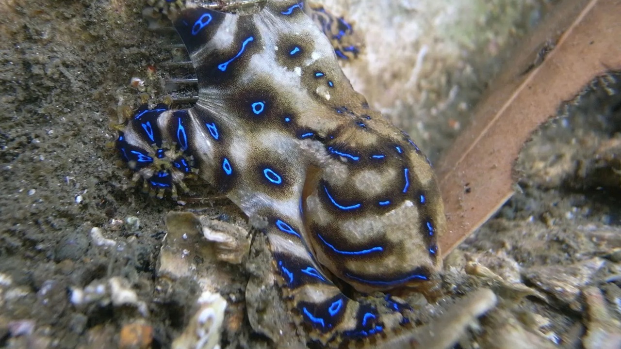 Το χταπόδι χρησιμοποιεί αποτρεπτικό χρωματισμό — μπλε δακτύλιοι εμφανίζονται όταν απειλείται για να προειδοποιήσει τους θηρευτές. Το δηλητήριο δεν παράγεται από το μαλάκιο, καθώς, το χταπόδι δεν παράγει τοξίνη. Τα βακτήρια στους σιελογόνους αδένες του είναι αυτά που συνθέτουν την τετροδοτοξίνη.