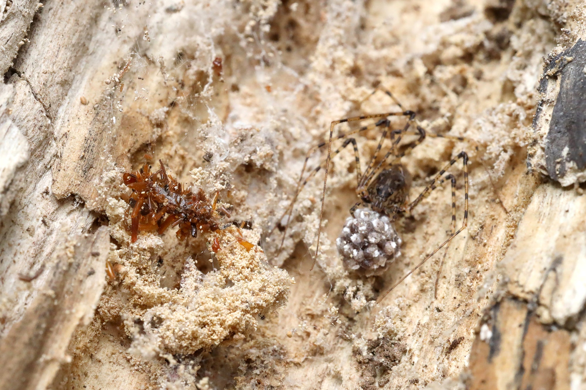 Η κάμπια ζει μέσα σε ιστούς αραχνών, ένα περιβάλλον που συνήθως θα ήταν θανάσιμο για τα περισσότερα έντομα. Ωστόσο, χάρη στο μακάβριο καμουφλάζ της, καταφέρνει να περνά απαρατήρητη από τις αράχνες, οι οποίες την αντιλαμβάνονται ως υπολείμματα προηγούμενων γευμάτων τους. Αυτό της επιτρέπει όχι μόνο να αποφεύγει την κατανάλωση από τις αράχνες αλλά και να τρέφεται με τα υπολείμματα των θηραμάτων τους.
