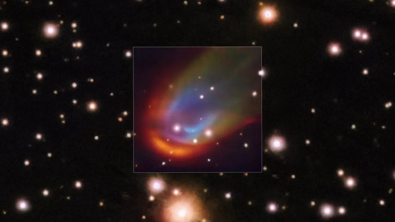 Συνήθως τέτοια δυαδικά συστήματα παράγουν δίσκο συσσώρευσης από υλικό του συντρόφου, που τροφοδοτεί εκπομπές και outflows, δημιουργώντας δομές παρόμοιες με κύμα πλώρης πλοίου όταν το σύστημα κινείται στο διαστρικό μέσο. Ομάδα με επικεφαλής τους Krystian Iłkiewicz από το Nicolaus Copernicus Astronomical Center και Simone Scaringi από το Durham University, εντόπισε αρχικά την περίεργη νέφωση με το Isaac Newton Telescope και επιβεβαίωσε με το MUSE spectrograph του Very Large Telescope της ESO.