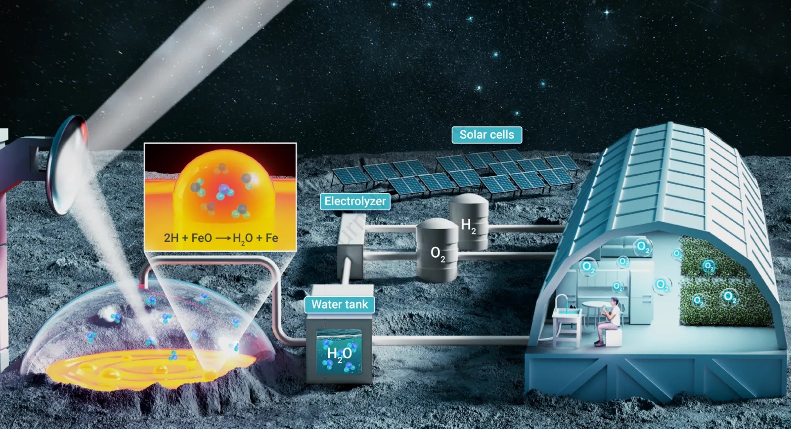 Εκτός από νερό, αυτή η διαδικασία παράγει επίσης σίδηρο και κεραμικό γυαλί, απαραίτητα υλικά για την κατασκευή σεληνιακών βάσεων και επιστημονικό εξοπλισμό. Επομένως, αυτή η ανακάλυψη δεν περιορίζεται στην απλή παραγωγή νερού, αλλά ανοίγει επίσης δυνατότητες για τοπική παραγωγή πόρων που είναι απαραίτητοι για παρατεταμένη ανθρώπινη παρουσία στη Σελήνη.