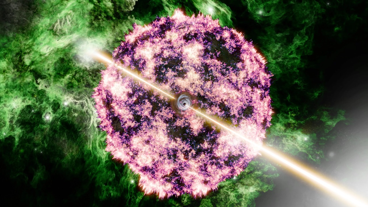 Το φαινόμενο μελετήθηκε χρησιμοποιώντας το διαστημικό τηλεσκόπιο James Webb, καταλήγοντας στο συμπέρασμα ότι ήταν το αποτέλεσμα της κατάρρευσης και της έκρηξης ενός τεράστιου αστεριού. Η μελέτη αποκαλύπτει επίσης ότι το συμβάν συνέβη σε μια πυκνή περιοχή σχηματισμού άστρων.