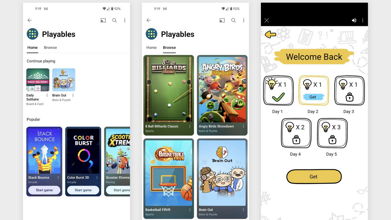 Μόλις εμφανιστεί ο τομέας Playables στην εφαρμογή του κινητού σας θα μπορείτε να παίξετε άμεσα 37 games, ένα από τα οποία είναι το Angry Birds Swowdown. Το ενδιαφέρον της υπηρεσίας είναι πως δεν χρειάζεται να κατεβάσετε τίποτα στον υπολογιστή σας, αφού όλα «τρέχουν» μέσα από τον browser. H προσέγγιση θυμίζει κάτι από Netflix και προς το παρόν το YouTube αναφέρει πως θα το προσφέρει έως και τις 28 Μαρτίου 2024. Τότε, θα αποφασίσει αν θα συνεχίσει να το παρέχει και σε μετέπειτα χρονική στιγμή.