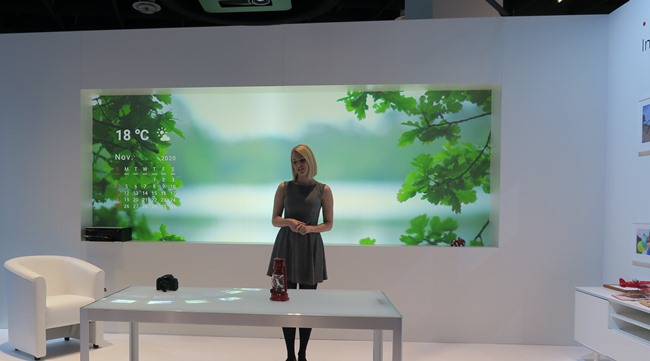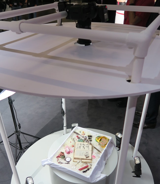 Το πλέον εντυπωσιακό και χειροπιαστό demo στο booth της Canon ήταν ένα διαδραστικό τραπέζι. Ένας προβολέας πρόβαλε στο τραπέζι το ειδικό software διαχείρισης φωτογραφιών της Canon, με το οποίο είχαμε πλήρη διαδραστικότητα με τα χέρια μας ή με άλλα αντικείμενα.