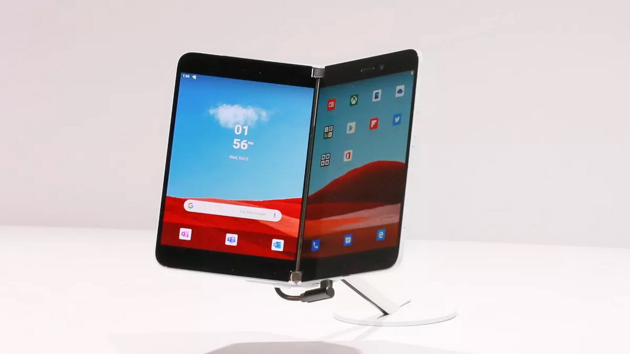 Το επερχόμενο Microsoft Surface Duo είδε τα τεχνικά του χαρακτηριστικά να διαρρέουν στο διαδίκτυο και μπορείτε να τα βρείτε στο άρθρο μας. Η συσκευή θα έχει δύο οθόνες ίδιου μεγέθους, ενώ το πάχος της θα είναι 4.8 χιλιοστά όταν είναι ανοιχτή και 9.6 χιλιοστά όταν είναι κλειστή. Κάθε οθόνη θα έχει διαγώνιο 5.6 ιντσών, θα είναι τεχνολογίας AMOLED, με ανάλυση 1800x1350 pixels και με αρκετά μεγάλα bezels. Το Microsoft Surface Duo θα «τρέχει» Android 10 και θα αναβαθμιστεί σε Android 11 λίγο μετά το λανσάρισμα. Θα υποστηρίζει το Surface Pen, ενώ από πλευράς επεξεργαστή θα έχει τον περσινό Snapdragon 855. Σε ό,τι αφορά τη μνήμη, θα έχουμε 6GB RAM, 256GB αποθηκευτικό χώρο (μη επεκτάσιμο), ενώ η κάμερα του θα έχει αισθητήρα 11MP f/2.0 με 1.12um pixel size. Ένας σαρωτής δαχτυλικών αποτυπωμάτων θα αναλαμβάνει τα της ταυτοποίησης, ενώ η μπαταρία του Microsoft Surface Duo θα έχει χωρητικότητα 3460mAh. Τέλος, δεν θα υπάρχει υποστήριξη για NFC, ασύρματη φόρτιση και 5G.