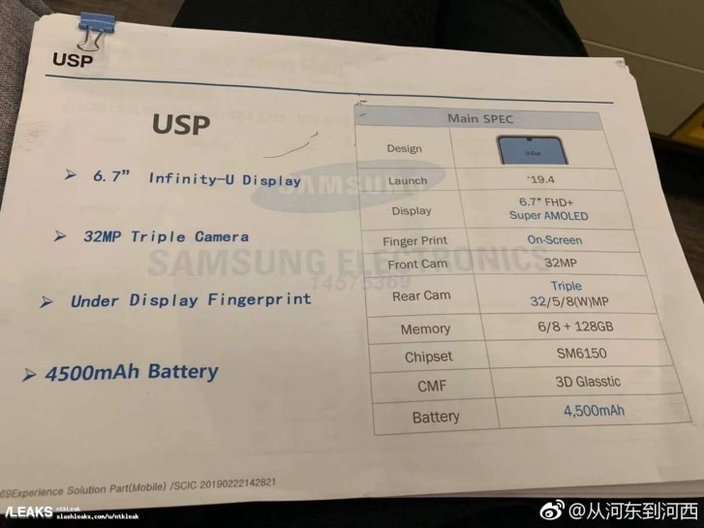 Οι διαρροές για επερχόμενα smartphones έχουν γίνει καθημερινή συνήθεια και σειρά τώρα παίρνει το Samsung Galaxy A60. Μην ξεχνάτε πως ήδη έχουν αποκαλυφθεί τα Galaxy A30 και A50, ενώ υπάρχουν τα Galaxy A70 και Galaxy A40, που βρίσκονται καθ' οδό. Το Galaxy A60 θα έρθει με οθόνη Super AMOLED 6,7'' ανάλυσης FHD+ (πιθανό 1080x2340 αν κρίνουμε από το A50) και το Infinity-U panel. Στην οθόνη θα υπάρχει επίσης ο αισθητήρας δακτυλικών αποτυπωμάτων αλλά και κάμερα 32 MP. Στο πίσω μέρος θα υπάρχει τριπλή κάμερα, με τη βασική να έχει ανάλυση 32 MP, 8 MP η ευρυγώνια και 5 MP ο αισθητήρας βάθους. Οι επιλογές για RAM είναι 6GB ή 8GB και ο αποθηκευτικός χώρος ανέρχεται στα 128GB. Το Galaxy A60 είναι επιπλέον εφοδιασμένο με Snapdragon 6150 chipset και μπαταρία χωρητικότητας 4.500 mAh. Το λειτουργικό θα είναι Android 9 Pie, κάτω από το One UI της Samsung.