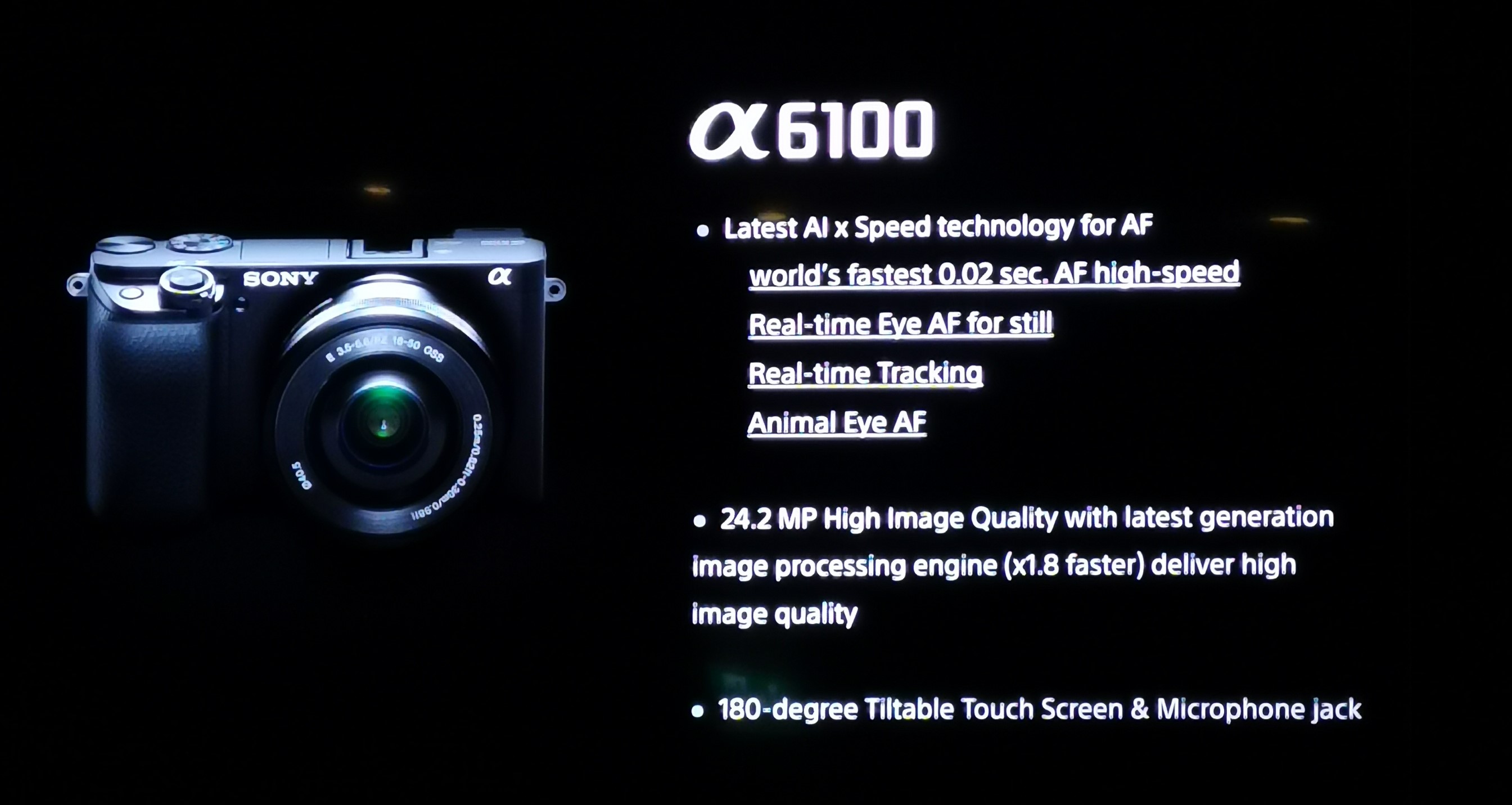 Η δεύτερη μηχανή που ανακοίνωσε η Sony, η a6100, απευθύνεται σε ακόμα περισσότερο κόσμο και αναμένεται να έχει την επιτυχία της a6000, για την οποία εκπρόσωποι της εταιρείας μας είπαν πως έχει πουλήσει πάνω από 500000 μέσα σε 4 χρόνια. Η μικρή α6100 βασίζεται και αυτή στην a6400 και ουσιαστικά αυτά που χάνει είναι το σώμα από μαγνήσιο (είναι πλαστικό), η δυνατότητα για HLG video και έχει χαμηλότερης ανάλυσης EVF. Διατηρεί όμως την είσοδο μικροφώνου, τη ανακλινόμενη οθόνη αφής, τo video 4K, τα 11fps με συνεχές auto focus, το real time eye auto focus σε φωτογραφίες για ανθρώπους και ζώα και γενικά το ίδιο, ταχύτατο σύστημα εστίασης. Αναμένται και αυτή τον Οκτώβρη στη τιμή των €900 για το σώμα.