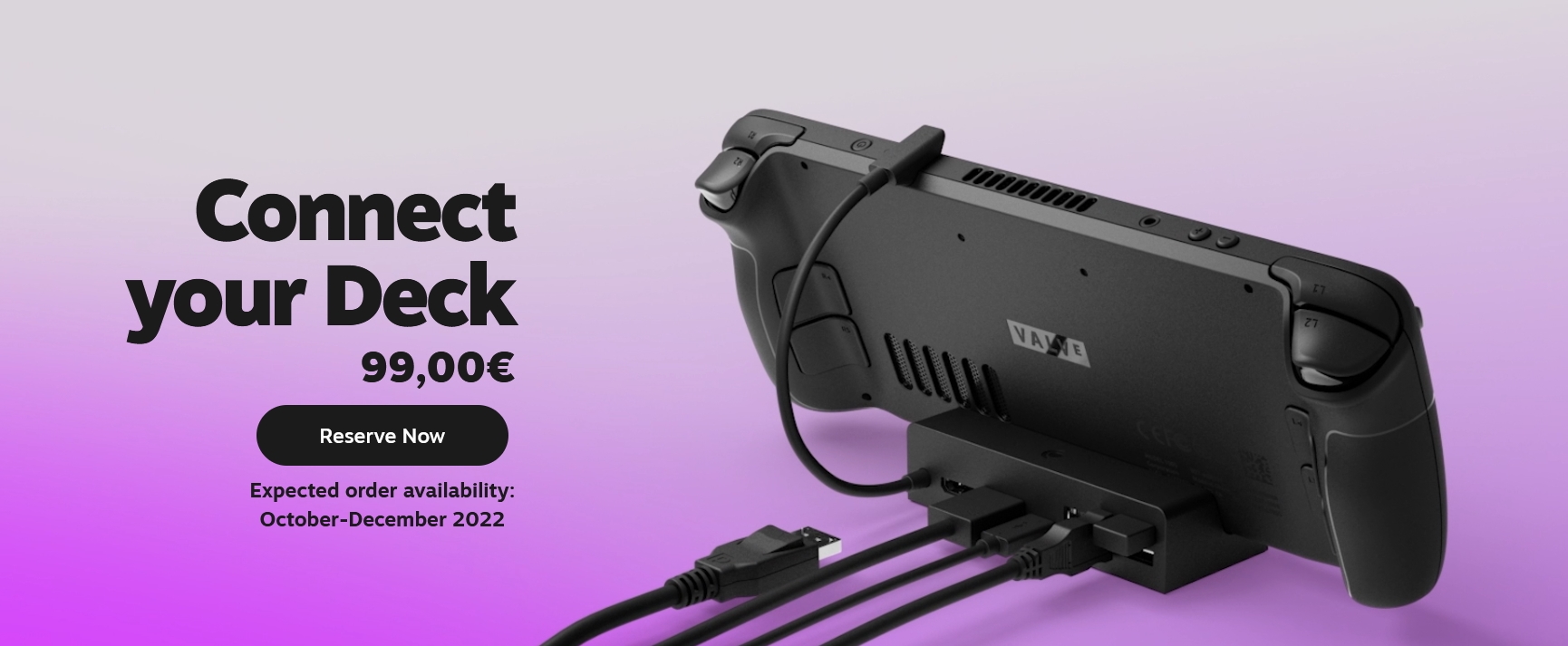 Ταυτόχρονα με αυτό το milestone, η Valve ανακοίνωσε και τη κυκλοφορία του Steam Deck Dock, της επιτραπέζιας βάσης στήριξης για τη κονσόλα που της επιτρέπει να συνδεθεί με τηλεόραση, με δίκτυο LAN και με εξωτερικούς δίσκους ενώ ταυτόχρονα φορτίζει. Το κόστος του Steam Deck Dock είναι €99 και περιλαμβάνει και ένα ακόμα φορτιστή.