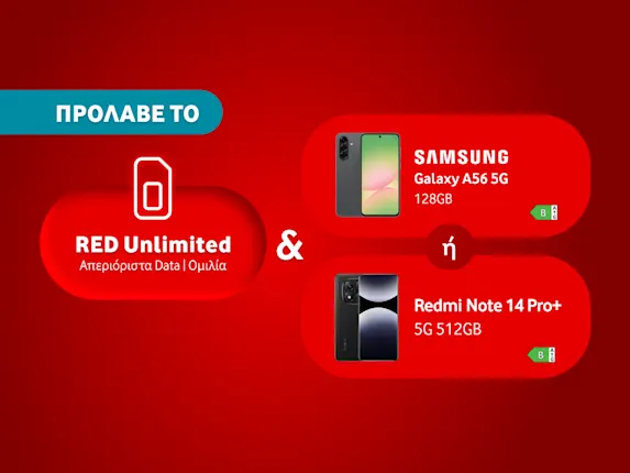 - Εφαρμόζεται απαλλαγή φόρου στην τιμή του παγίου Vodafone RED Unlimited σε δικαιούχους έως 29 ετών, κατόπιν επιτυχούς εγγραφής στο www.gov.gr.