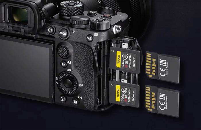 Η μηχανή λοιπόν έχει θύρα για κάρτες SDXC (διπλή με υποστήριξη UHS-II και UHS-I), ενώ ταυτόχρονα είναι η πρώτη που ενσωματώνει το νέας γενιάς και τεχνολογίας πρότυπο CFExpress με κάρτες TypeA, οι οποίες υποστηρίζουν ακόμα υψηλότερες ταχύτητες εγγραφής (έως 800Mb/s ανάγνωση και 700MB/s εγγραφή με κόστος της τάξης των €230 για 80GB χώρου) ώστε να μπορούν να υποστηριχθούν τα ακόμα υψηλότερα bitrate στα οποία γράφει η A7SIII. Όσον αφορά στους codec, η μηχανή έχει δυο νέα codec, το XAVC-S-I που προσφέρει καλύτερη συμπίεση σε σχέση με το XAVC-S καθώς επίσης και το XAVC-HS, το οποίο είναι τύπου H.265 και προσφέρει διπλάσια συμπίεση σε σχέση με το H.264 και άρα καταλαμβάνοντας το μισό χώρο, διατηρώντας την ίδια ποιότητα. Το μέγιστο διαθέσιμο bitrate φτάνει στα 500Mbps γράφοντας με XAVS-S-I σε 4K/60fps, ενώ με τον XAVC-HS codec μπορεί να φτάσει τα 280Mbps σε 4K/120fps, πάντα με 10bit color. Ακόμα και παλιός XAVC-S codec είναι διαθέσιμος και βελτιωμένος, με έως 280Mbps σε 4K/120fps και 10bit color. Σημαντικό είναι ότι τα περισσότερα mode δεν απαιτούν τίποτα περισσότερο από κάρτες SDXC V60 και μόνο ένα απαιτεί τις νέες κάρτες CFExpress Type A (το slow & Q με XAVC-S-I). Για όσους θέλουν να γράφουν σε RAW, πλέον υπάρχει υποστήριξη ακόμα και 16-bit RAW μέσω HDMI 2.1 σε εξωτερικό εγγραφέα (αναφέρθηκε το Atomos Ninja V).