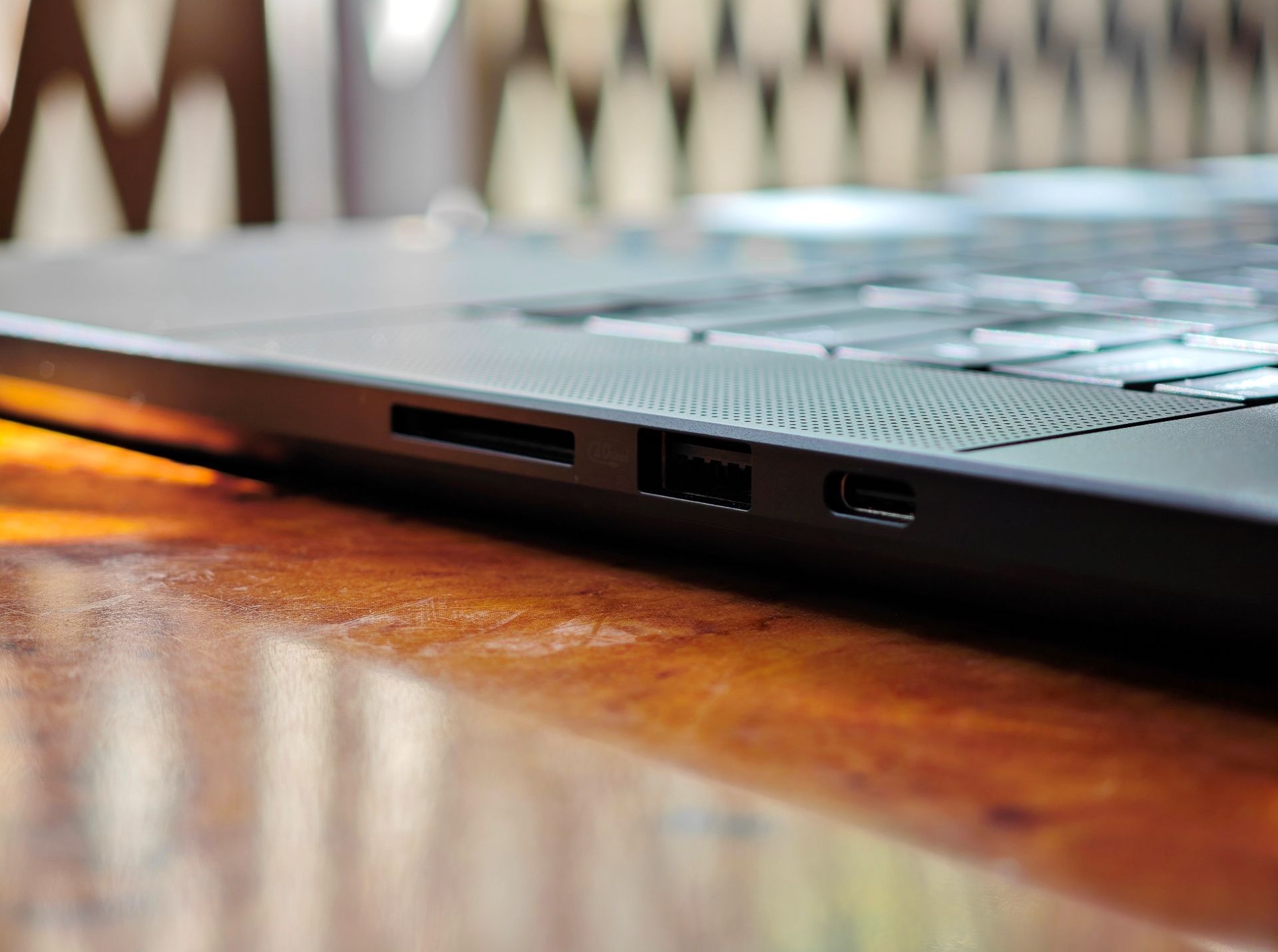 Το τεράστιο touchpad βγάζει μάτια, με το πληκτρολόγιο να έχει ωραία αίσθηση. Από πλευράς θυρών, βρίσκουμε 2 Type-C USB 4.0 Gen 3 με δυνατότητα εξόδου εικόνας, 1 USB 3.2 Gen 2 (Type-A αυτή), έξοδο HDMI 2.1, αναγνώστη καρτών SD και combo mini jack.