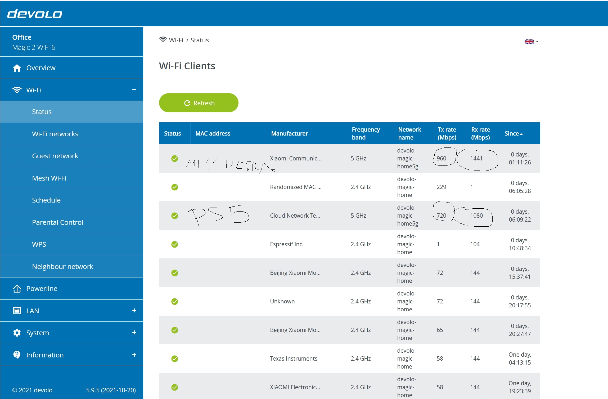 Επιπλέον, χάρη στη τεχνολογία Bandsteering, οι συσκευές συνδέονται αυτόματα στη καλύτερη συχνότητα (εφόσον ο χρήστης έχει επιλέξει να χρησιμοποιεί ένα όνομα δικτύου και για τις δυο συχνότητες). Για παράδειγμα ένα κινητό μπορεί να συνδέεται στα 5Ghz ενώ μια ρομποτική σκούπα που δεν υποστηρίζει τα 5Ghz, να συνδέεται στα 2,4Ghz. Σημαντικό είναι και το Airtime fairness, το οποίο δίνει σε όλες τις συσκευές που συνδέονται στο ασύρματο δίκτυο τον ίδιο χρόνο σύνδεσης, χωρίς να χρειάζεται να «πεταχτεί» κάποια εκτός. Η διαχείριση των συσκευών, εφόσον κάποιος θέλει να προβεί σε τέτοιες ενέργειες γίνεται είτε μέσω της εφαρμογής Home Network (Android/iOS) είτε μέσω του devolo Cockpit για Windows/Mac είτε τρέχοντας το web interface του εκάστοτε homeplus μέσα από web browser, εφόσον κάποιος γνωρίζει την IP του εξ αρχής. Σε κάθε περίπτωση, οι επιλογές είναι πολλές. Μπορούμε να φτιάξουμε guest δίκτυα τα οποία έχουν πρόσβαση μόνο στο Internet και όχι σε τυχόν τοπικό δίκτυο, μπορούμε να έχουμε schedule για το πότε θα λειτουργεί το Wifi μέσα στην εβδομάδα, και φυσικά μπορούμε να βλέπουμε τις συσκευές που είναι συνδεδεμένες στο δίκτυο, είτε ενσύρματα είτε ασύρματα.