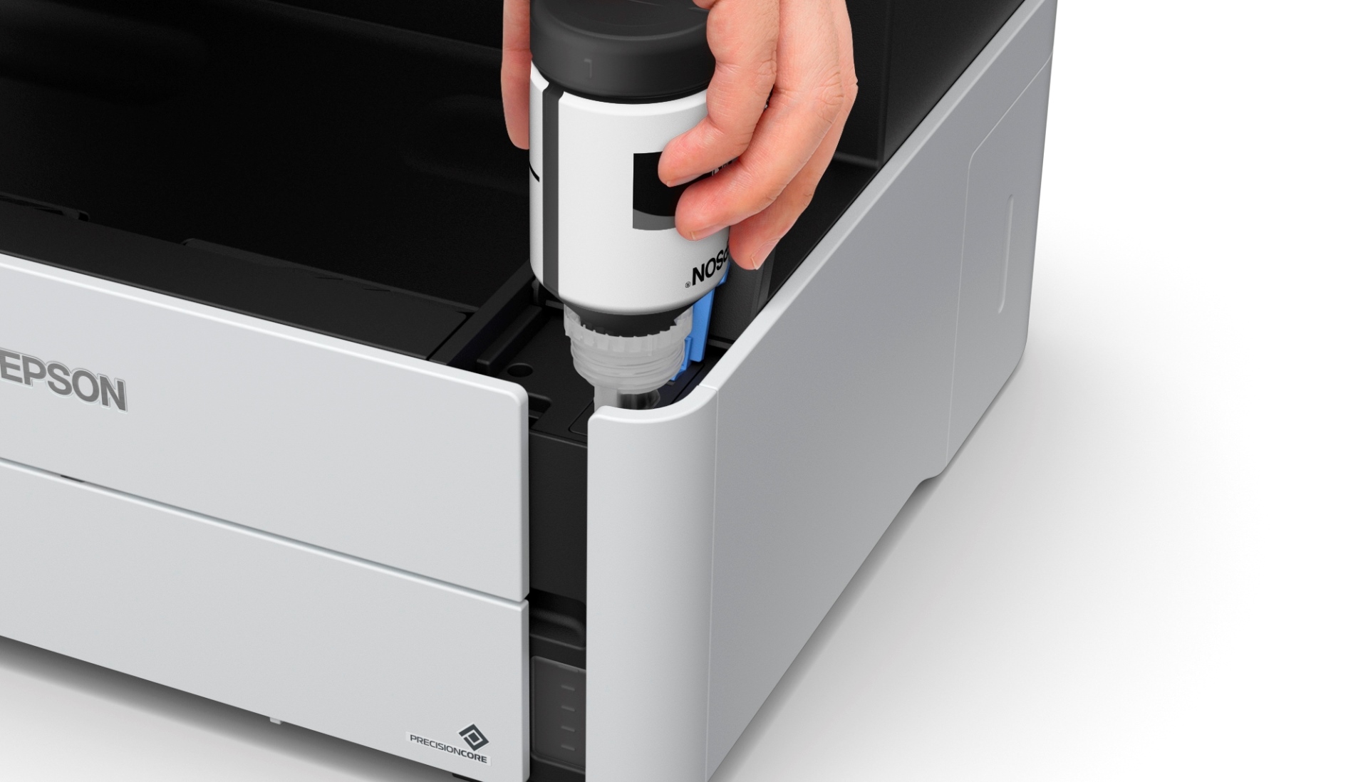 Πρόκειται για ένα ιδιαίτερα μαζεμένο και ελαφρύ μηχάνημα, το οποίο μπορεί είτε να συνδεθεί απευθείας με υπολογιστή μέσω USB είτε να μπει στο δίκτυο σπιτιού/επιχείρησης μέσω Ethernet ή ακόμα καλύτερα WiFi. Η εγκατάσταση είναι πανεύκολη μέσω USB, ενώ δεν είχαμε κανένα πρόβλημα να εκτυπώσουμε μέσω WiFi, είτε από υπολογιστή είτε από κινητό Android. Ο εκτυπωτής έρχεται στη συσκευασία με δυο φιάλες μαύρης μελάνης Epson (κόστος απόκτησης €10-€12) τις οποίες χρησιμοποιούμε για να γεμίσουμε την ειδική υποδοχή που διαθέτει ο M1170. Δεν υπάρχουν cartidges και έτσι το κόστος χρήσης μειώνεται αισθητά, αφού εν τέλει ο χρήστης αγοράζει μόνο το μελάνι. Κάθε δοχείο είναι ικανό να τυπώσει περί τις 6000 σελίδες, οπότε με την αγορά του εκτυπωτή ο χρήστης έχει μια διάρκεια χρήσης περίπου 11-12 χιλιάδες σελίδες. Πάντα βέβαια μιλάμε για μονόχρωμη εκτύπωση. Αλλά ακόμα και έτσι το νούμερο είναι εντυπωσιακό και σίγουρα συγκρίσιμο με του laser. Ειδικά αν γίνεται εξαιρετικά μεγάλη χρήση, μετά από ένα χρονικό διάστημα που ένας αντίστοιχος laser θα χρειαστεί αντικατάσταση του toner, το κόστος χρήσης του M1170 φαίνεται τουλάχιστον ανταγωνιστικό. Επιπλέον, χάρη στη κεφαλή εκτύπωσης PrecisionCore της Epson, η ποιότητα εκτύπωσης είναι εξαιρετική, προσφέροντας μέγιστη ανάλυση της τάξης των 1200x2400dpi.
