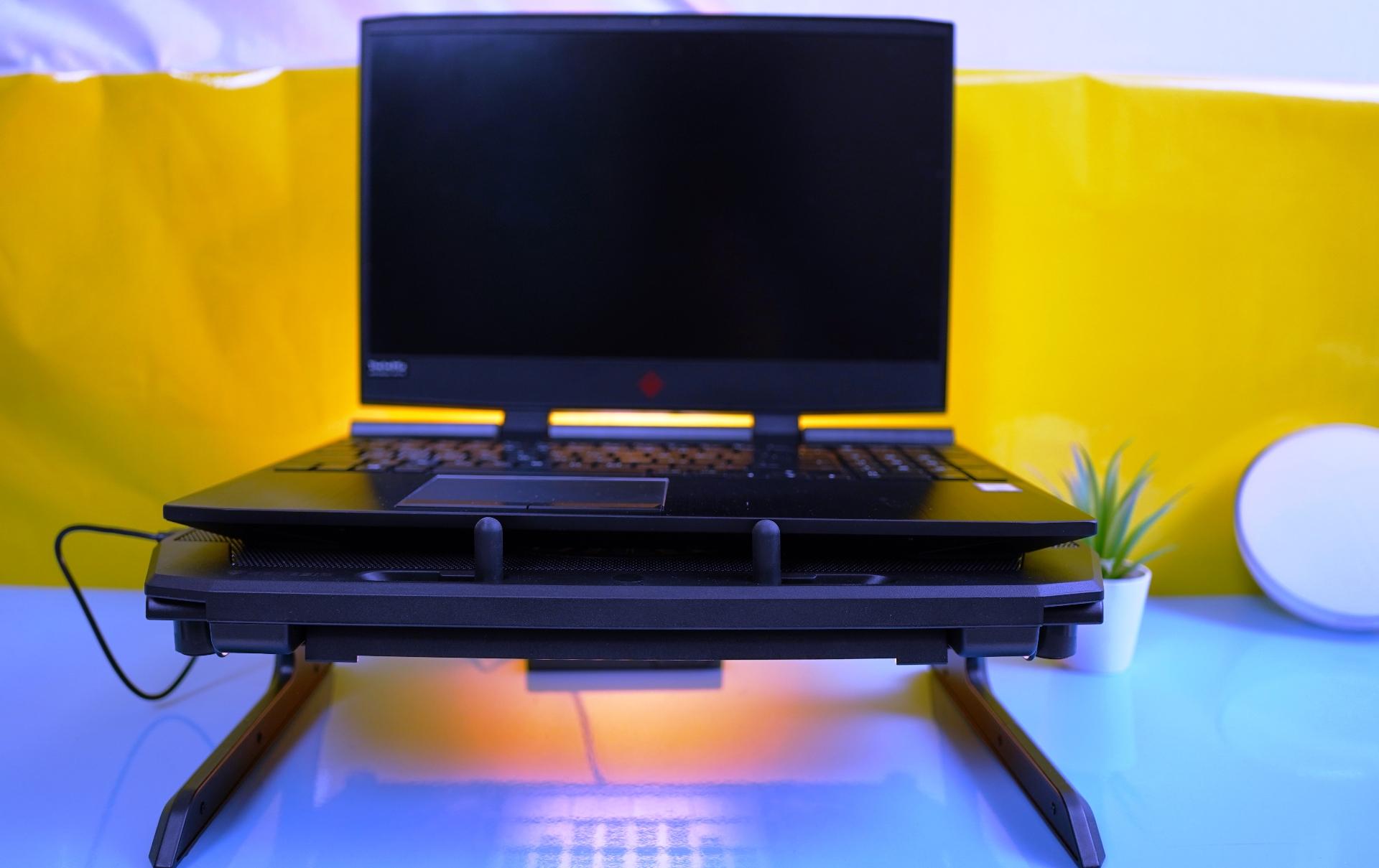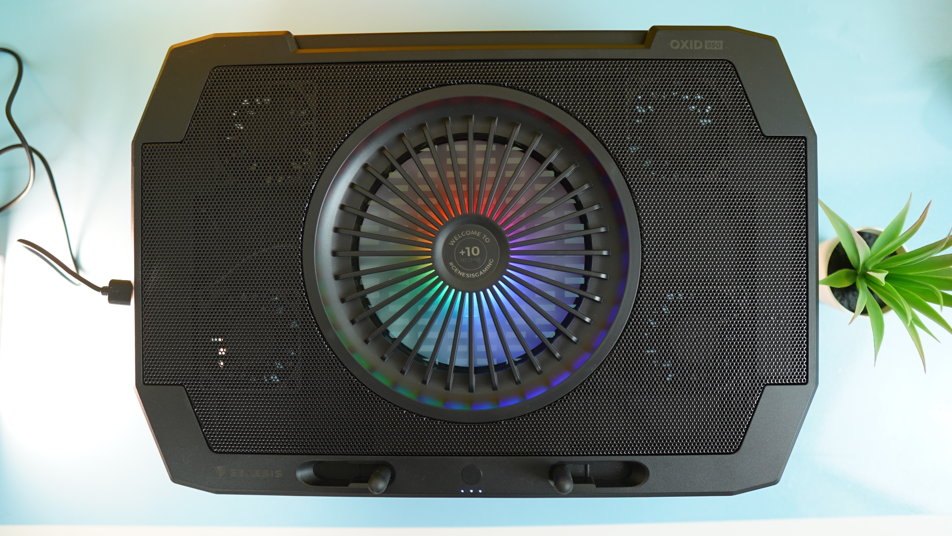 Στη πράξη τώρα, τοποθετήσαμε στο OXID 850 ένα HP Omen 15,4’’ (η βάση δέχεται και 17άρια laptop) και δεν είχαμε κανένα πρόβλημα σταθερότητας. Τα τέσσερα ποδαράκια στο κάτω μέρος τη καθιστούν σταθερή πάνω στο γραφείο ενώ ακόμα και ανασηκώνοντας τα πόδια, δεν παρατηρήσαμε κάποιο πρόβλημα. Το μόνο που έχουμε να πούμε είναι όταν η βάση δεν έχει καθόλου χώρο από κάτω (πριν σηκώσουμε τα πόδια προφανώς) για να βάλει κανείς χαρτιά κτλ. Όσον αφορά στους ανεμιστήρες, ακόμα και στη μέγιστη ταχύτητα περιστροφής ακούγονται ελάχιστα και σίγουρα πολύ λιγότερο από από αυτούς του laptop που ούτως ή άλλως κάποια στιγμή παίρνουν μπρος και… παίρνουν τα αυτιά. Πάντως, παρατηρήσαμε χαμηλότερες θερμοκρασίες κατά την ώρα του gaming σε σχέση με αυτές που είχαμε συνηθίσει. Όσον αφορά στο φωτισμό που προσφέρει ο βασικός ανεμιστήρας, αυτός μάλλον δεν γίνεται αντιληπτός όταν η βάση είναι επίπεδη, ενώ και ανασηκωμένη φαίνεται ελάχιστα, καθώς το laptop σε κάθε περίπτωση τον κρύβει. Συνολικά πάντως, το OXID 850 έκανε τη δουλειά που υπόσχεται. Να σημειώσουμε πως τα προϊόντα της εταιρείας (https://genesis-zone.com) μπορεί κανείς να τα αποκτήσει από το E-shop.gr.