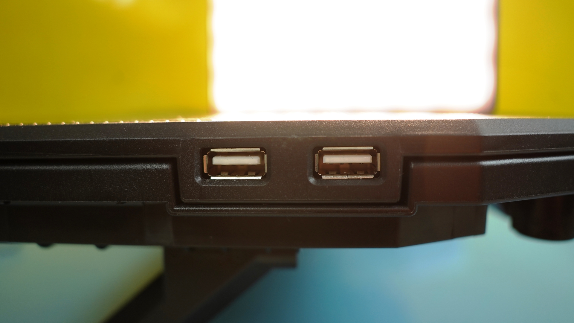 Οι πέντε ανεμιστήρες για να λειτουργήσουν χρειάζονται ρεύμα και για το σκοπό αυτό χρησιμοποιούμε το USB καλώδιο που βρίσκεται στη συσκευασία. Στην αριστερή πλευρά του OXID 850 συναντάμε δυο θύρες USB. Αφού συνδέσουμε το καλώδιο στη μια από αυτές, συνδέουμε την άλλη άκρη σε μια ελεύθερη USB του laptop και αμέσως οι ανεμιστήρες παίρνουν μπρος ενώ ανάβει και ο φωτισμός του μεγάλου. Ταυτόχρονα, μπορούμε να χρησιμοποιήσουμε τη δεύτερη θύρα για άλλες συσκευές ώστε να μη μείνουμε με λιγότερες θύρες USB. Βέβαια, επειδή οι USB του OXID 850 είναι USB 2.0, καλό είναι η σύνδεση με το laptop να γίνει σε USB 2.0 ώστε να μη σπαταλήσουμε κάποια USB 3.0.