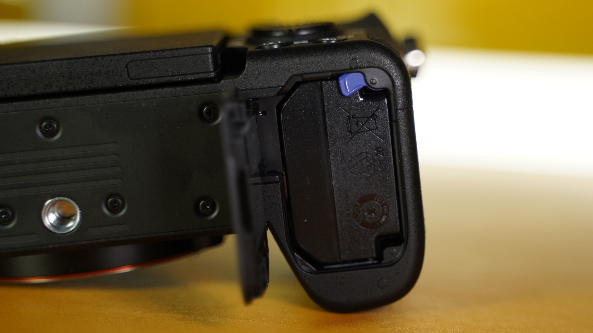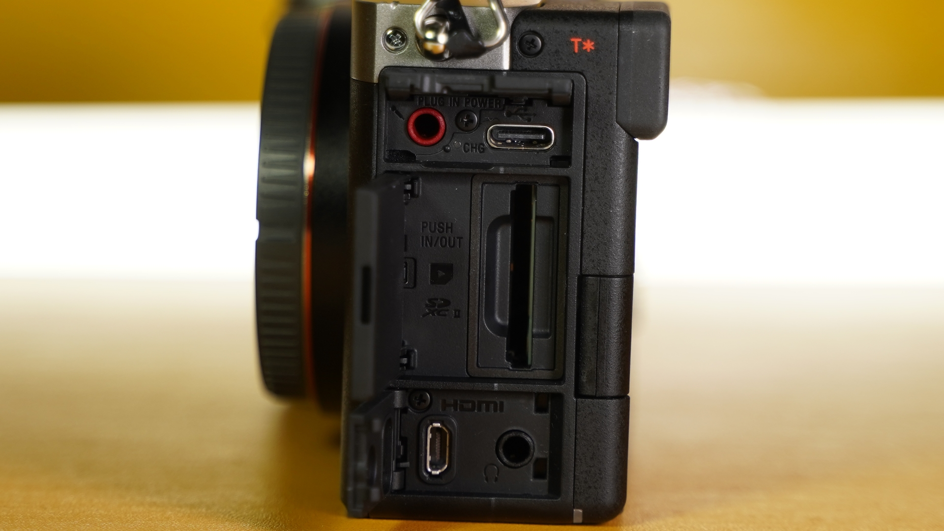Στην αριστερή πλευρά έχουμε όλες τις θύρες επικοινωνίας της μηχανής πίσω από τρια πορτάκια. Το πάνω πορτάκι έχει ένα mini-jack για είσοδο μικροφώνου και τη Type-C USB για τη φόρτιση της μπαταρίας ή και τη σύνδεση με τον υπολογιστή. Μέσω της Type-C USB η Sony a7C II μπορεί να χρησιμοποιηθεί και σαν web camera για τον υπολογιστή εφόσον ενεργοποιήσουμε τη σχετική επιλογή από το menu. Μάλιστα, συνδέοντάς τη μηχανή σε USB 3.0 θύρα του υπολογιστή, μπορούμε να χρησιμοποιήσουμε ανάλυση έως 4K στα 30 fps, με τη μηχανή να εξακολουθεί να έχει ενεργά όλα τα ειδικά χαρακτηριστικά της στο τομέα της αυτόματης εστίασης. Συνεχίζοντας με την αριστερή πλευρά, έχουμε ακόμα μια θέση για τις κάρτες SD. Στο τρίτο πορτάκι έχουμε την έξοδο ακουστικών και την έξοδο HDMI σε micro μορφή με υποστήριξη ανάλυσης έως 4K60. Η a7CII ακόμα και όταν είναι συνδεδεμένη σε εξωτερική οθόνη/recorder συνεχίζει να λειτουργεί με όλες τις της δυνατότητες ενεργές όσον αφορά στην αυτόματη εστίαση, όμως για ακόμα μια φορά δε μπορούμε να βλέπουμε ταυτόχρονα στην οθόνη της κάμερας και στην εξωτερική το μενού.