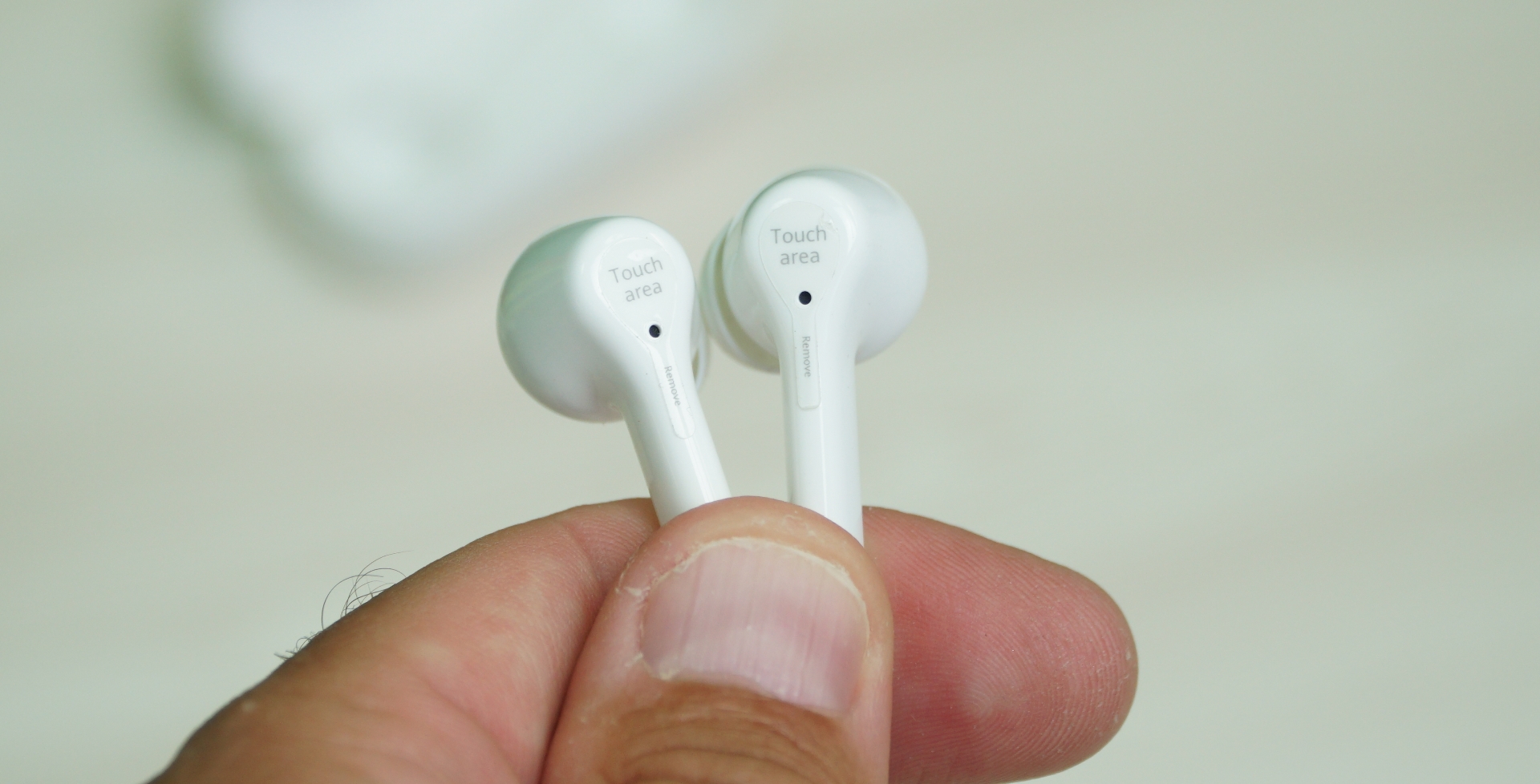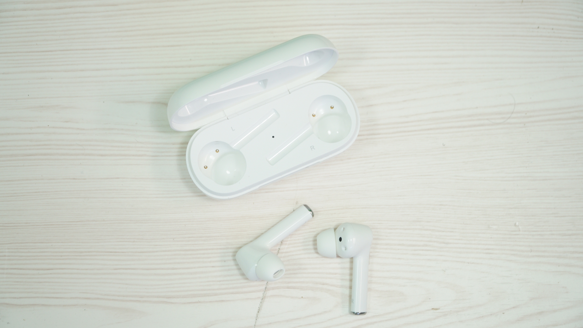 Τα ακουστικά είναι μαγνητικά ασφαλισμένα σε δυο εσοχές στο εσωτερικό της θήκης, και μόλις βγάλουμε κάποιο από μέσα, άμεσα γίνεται η ενεργοποίησή του και μεταφορά του ήχου από το τηλέφωνο σε αυτό. Η σχεδίαση των ακουστικών ακολουθεί τη λογική των AirPods, με τις κάψουλες να τοποθετούνται μέσα στο αυτί, ουσιαστικά σφραγίζοντάς το, ενώ μια λεπτή στήλη εξέχει προς τα κάτω. Στην πλευρά της κάψουλας που τοποθετείται μέσα στο αυτί υπάρχει και ο απαραίτητος αισθητήρας ώστε το ακουστικό να αντιλαμβάνεται ότι έχει τοποθετηθεί στο αυτό, καθώς και οι ακίδες φόρτισης. Η σύνδεση με το τηλέφωνο γίνεται άμεσα με το που θα ανοίξει το καπάκι οπότε δε χάνεται χρόνος όταν κάποιος θέλει να μιλήσει μέσω του ενός ακουστικού.