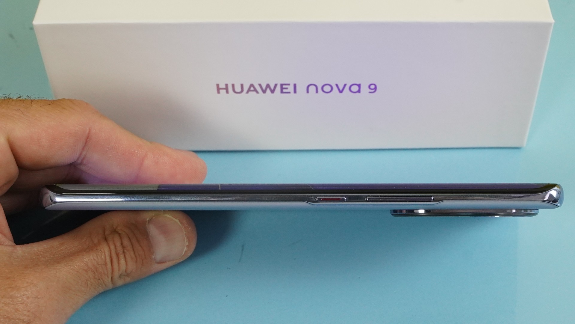 Το Huawei Nova 9 έρχεται σε μια τυπική συσκευασία μέσα στην οποία βρίσκουμε την ίδια τη συσκευή, μια λεπτή και διάφανη προστατευτική θήκη, ένα εργαλείο για να ανοίξουμε τη θύρα υποδοχής καρτών SIM και ένα γρήγορο φορτιστή 66Watt παρέα με το σχετικό καλώδιο USB Type-C. Παίρνοντας τη συσκευή στο χέρι, αντιλαμβάνεται μια πραγματικά ξεχωριστή αίσθηση. Το τηλέφωνο είναι πραγματικά λεπτό και ελαφρύ (μόλις 175gr, μεταφέροντας μια εξαιρετική αίσθηση ποιότητας στο κάτοχό του. σημαντικό ρόλο σε αυτό παίζει η οθόνη των 6,57’’ με τις κυρτές πλευρές και τα ελάχιστα bezel στο πάνω και κάτω μέρος. Η υπογράφων δε θυμάται άλλο τηλέφωνο στη midrange κατηγορία να έρχεται με τέτοια οθόνη, η οποία πραγματικά εντυπωσιάζει καθώς κρατώντας το τηλέφωνο στο χέρι, ο χρήστης δε βλέπει τις δυο κάθετες πλευρές τους. Κάποιοι βέβαια δεν αρέσκονται στις κυρτές πλευρές επειδή το κράτημα δεν είναι τόσο σταθερό, ωστόσο με τη θήκη που βρίσκεται στο κουτί, το πρόβλημα αυτό λύνεται άμεσα.