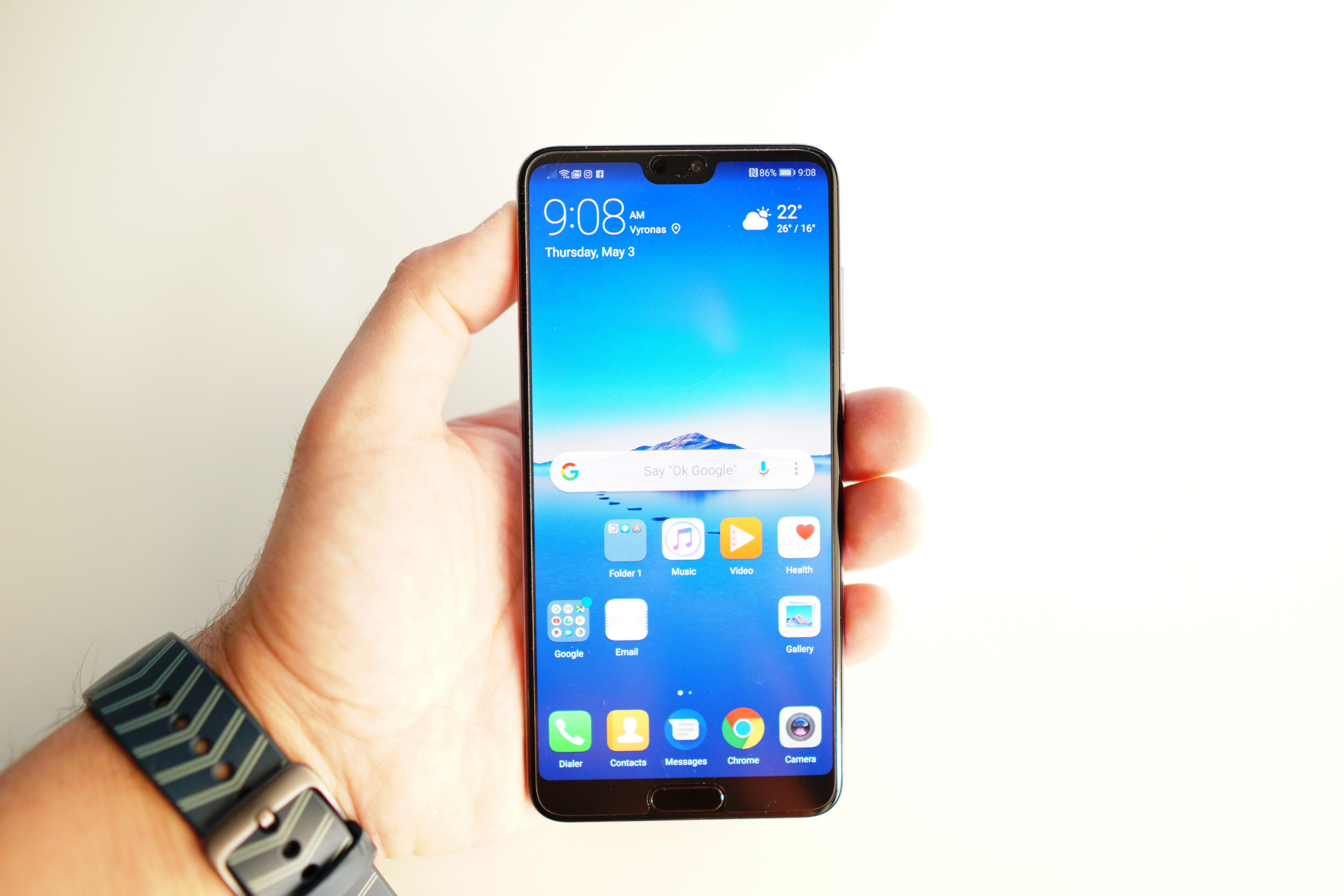 Τελικά ούτε η Huawei κατάφερε να κατασκευάσει μια πλήρως full display πρόσοψη, αφού άφησε μπροστά τον αισθητήρα. Ωστόσο, έχει κερδίσει χώρο στο πάνω μέρος, ακολουθώντας τη σχεδιαστική προσέγγιση της Apple, με την εγκοπή στο κέντρο της πάνω πλευράς της οθόνης, να ενσωματώνει τη μπροστινή κάμερα (24Mpixel αλλά χωρίς auto focus) και το ηχείο. Η αλήθεια είναι πως ο υπογράφων δεν είχε αγαπήσει αυτή τη καινοτομία της Apple οπότε και εδώ τα συναισθήματα είναι ανάλογα. Η εγκοπή μπορεί να είναι ενοχλητική σε κάποιες περιπτώσεις (ειδικά σε εφαρμογές που δεν την καταλαβαίνουν όπως το Instagram) ή να μη το καταλαβαίνουμε καν στη καθημερινή χρήση, όταν επιλέξουμε να την εξαφανίσουμε. Το ειδικά διαμορφωμένο Android 8.1 (EMUI 8 το λέει η Huawei) προσφέρει επιλογή όπου η οθόνη γίνεται μαύρη δεξιά και αριστερά από την εγκοπή, αφήνοντας μόνο τα εικονίδια του provider, της μπαταρίας της ώρας και γενικότερα των ειδοποιήσεων. Σε αυτήν την περίπτωση είναι σαν να έχουμε μια μαύρη μπάρα πάνω από την οθόνη, που όμως αξιοποιείται από τις παραπάνω ενημερώσεις, η οποία λειτουργεί άριστα χάρη στο γεγονός ότι μιλάμε για OLED panel, το οποίο θα αναλύσουμε στη συνέχεια.