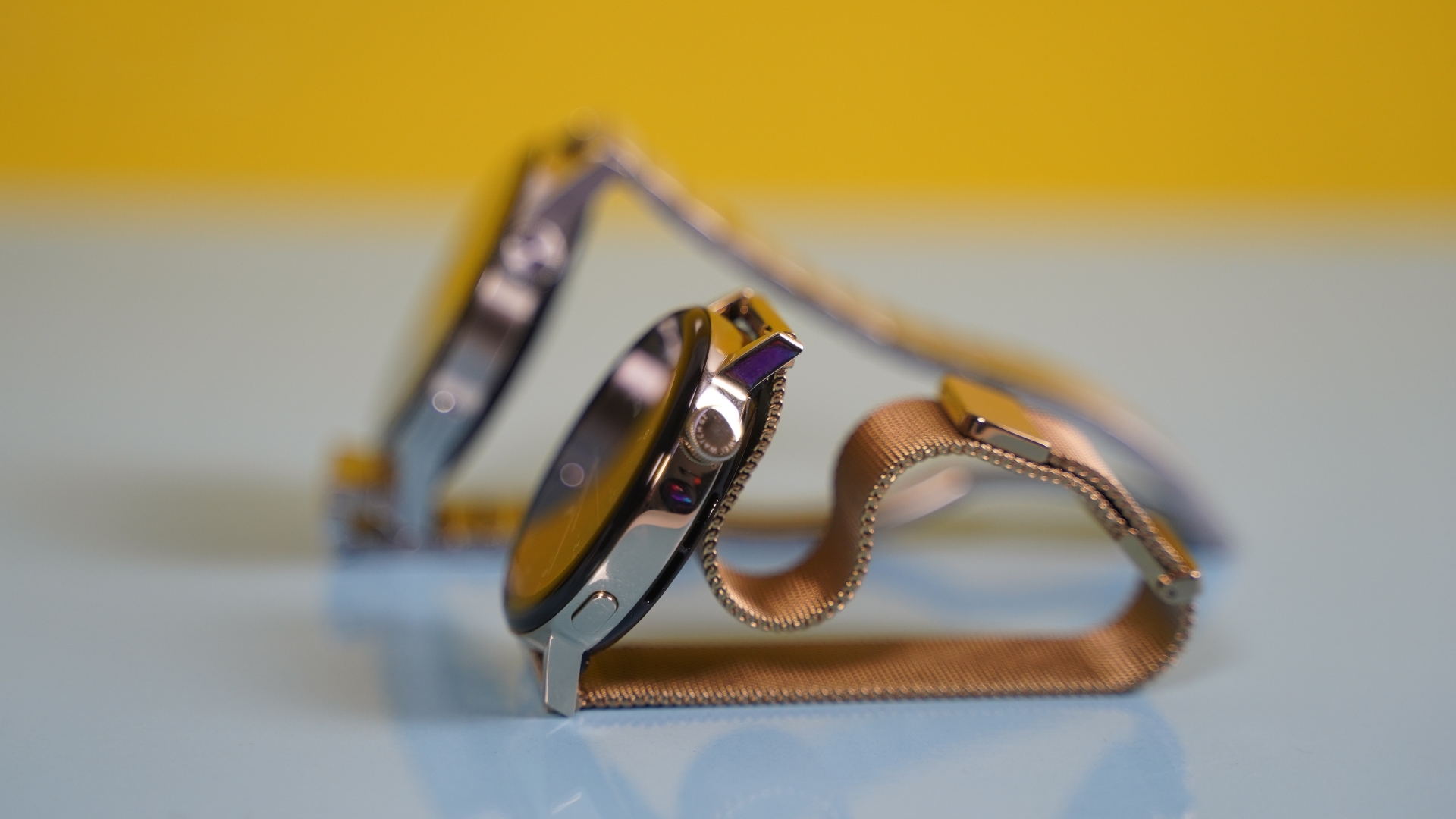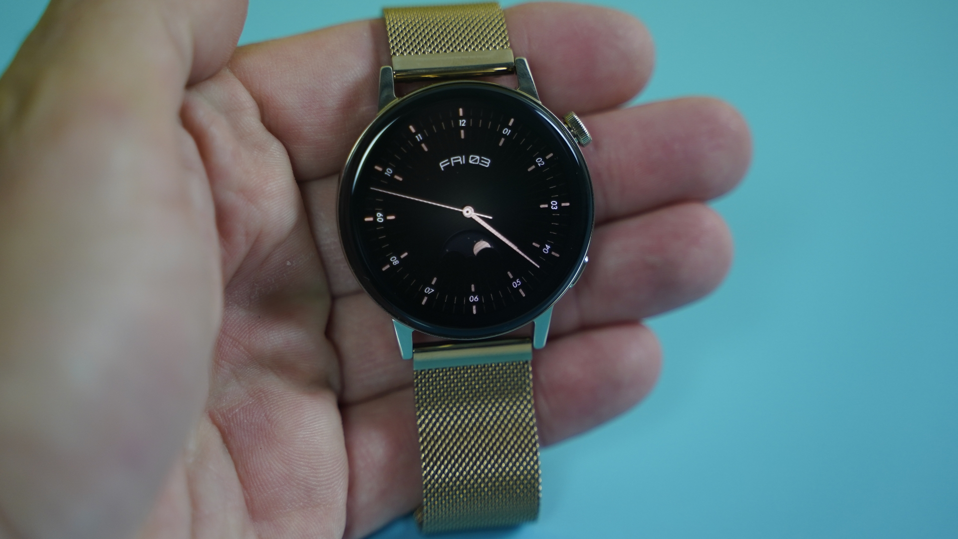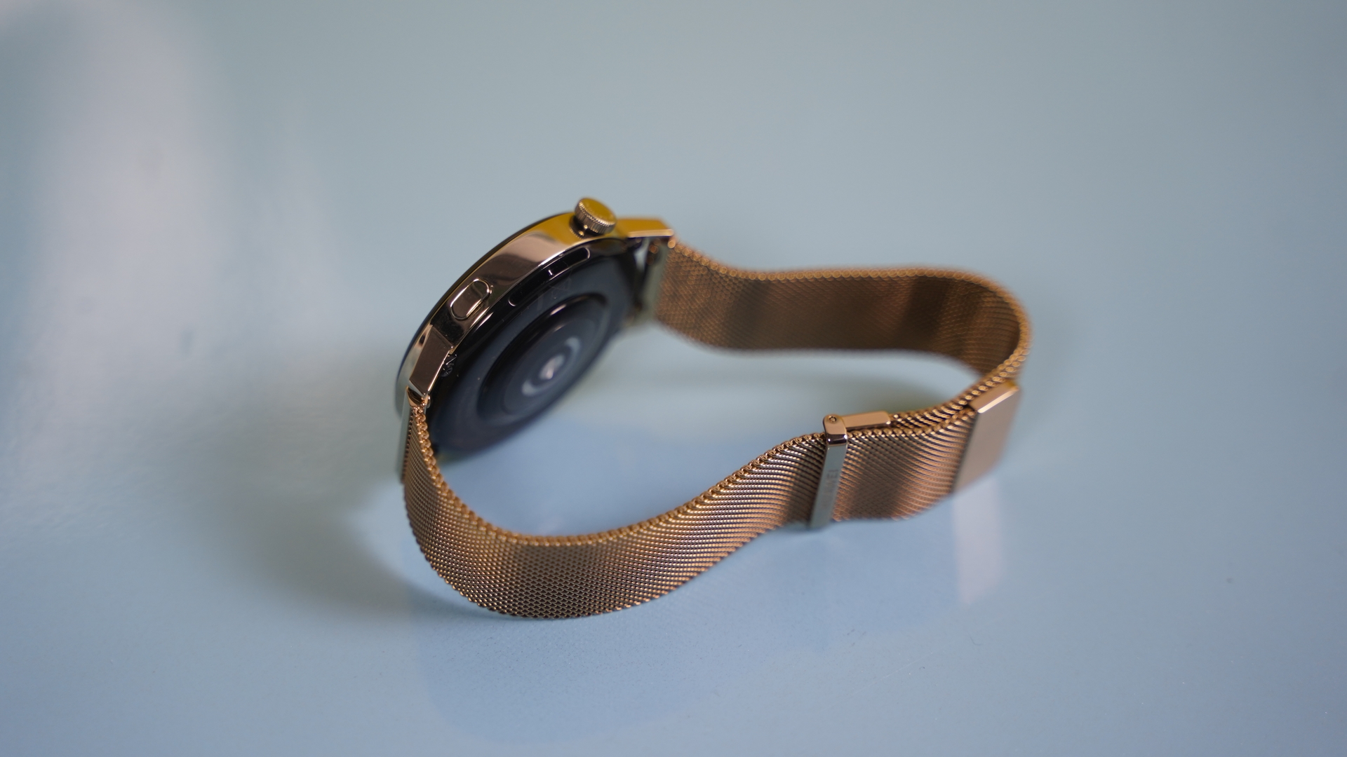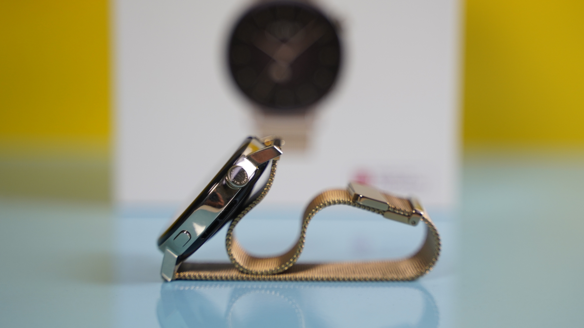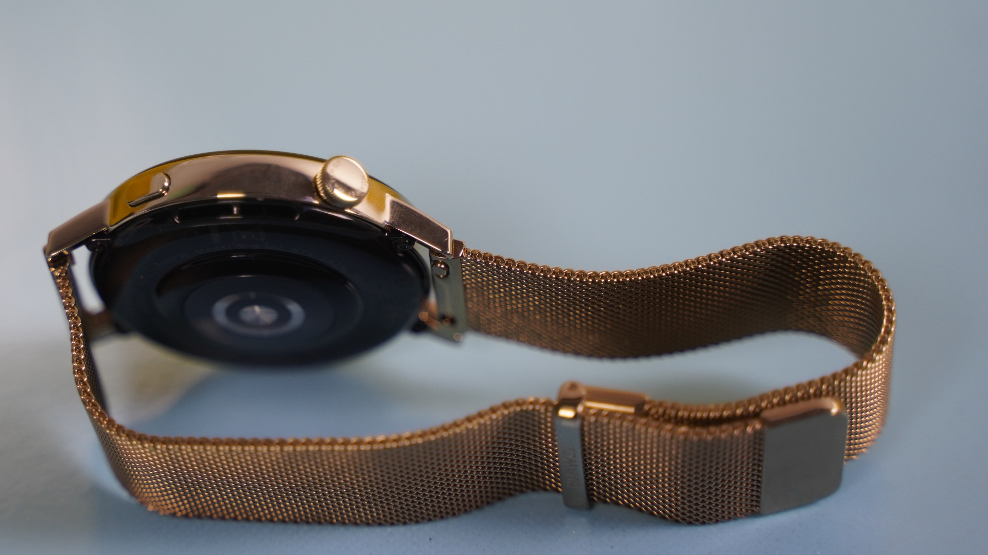 Όλα τα παραπάνω (αλλά και ότι ακολουθεί) σε μεγάλο βαθμό ισχύουν και για το Watch GT 3 των 42mm. Η έκδοση Elegant Edition Gold που είχαμε στη διάθεσή μας έχει κάσα χρυσής απόχρωσης και ένα μεταλλικό (stainless steel) μπρασελέ τύπου Milanese επίσης χρυσής απόχρωσης. Ο συγκεκριμένος τύπος μπρασελέ αποτελείται από εκατοντάδες συνδέσμους δεμένους μεταξύ, καθιστώντας τον εύκαμπτο και πολύ άνετο στο χέρι, ενώ ασφαλίζει μαγνητικά καθώς στην άκρη υπάρχει ένας ισχυρός μαγνήτης.