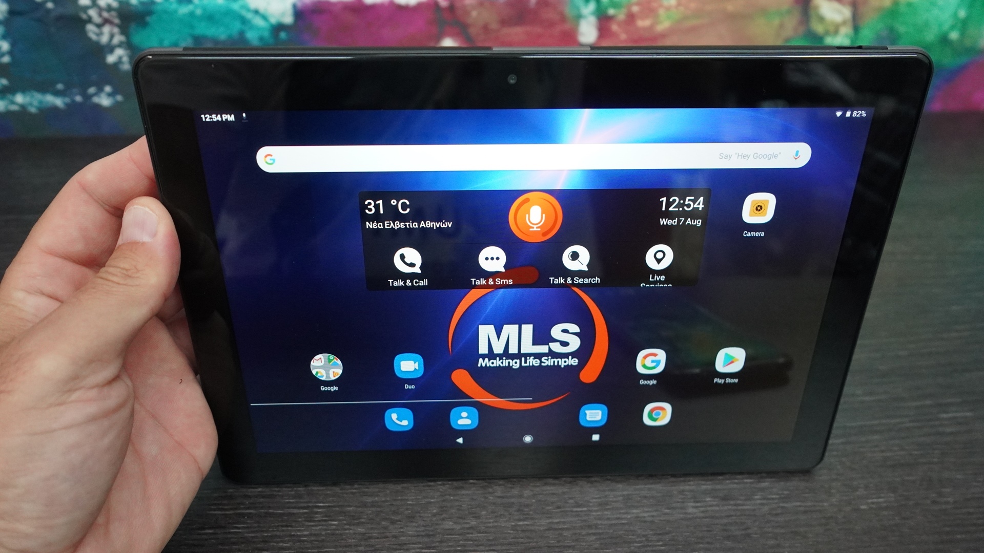 Πηγαίνοντας τώρα στο software του tablet, αυτό έρχεται με Android 9 και οι μοναδικές προεγκατεστημένες εφαρμογές είναι η αυτές που αφορούν τη σουίτα MAIC της MLS, η οποία πλέον μιλάει και άλλες γλώσσες, όχι μόνο ελληνικά. Μέσω αυτής μπορούμε να στείλουμε μηνύματα και email χωρίς να χρειαστεί να πατήσουμε κάτι άλλο, πέρα από το εικονίδιο του μικροφώνου για να ενεργοποιηθεί η MAIC. Υπάρχουν και άλλες δυνατότητες που μπορεί κανείς να αξιοποιήσει μέσω της χρήσης της φωνής, όπως για παράδειγμα μετάφραση φράσεων και αναζήτησης στο internet. Γενικότερα, όλες οι φωνητικές λειτουργίες που έχουμε δει και σε προηγούμενές συσκευές της εταιρείες είναι εδώ και δουλεύουν άριστα. Επιπλέον μέσω της εφαρμογής MLS Live, μπορεί κανείς να βρει άμεσα πληροφορίες για τον καιρό αλλά και να δει τα κοντινά σε αυτόν φαρμακεία, νοσοκομεία, βενζινάδικα, καφετέριες εστιατόρια, τράπεζες και χώρους στάθμευσης, με άμεση δυνατότητα πλοήγησης σε όποιο επιλέξουμε μέσα από τα Google Maps. Φυσικά, υπάρχει διαθέσιμος και ο Google Assistant για όσους θέλουν να μιλήσουν αγγλικά, αλλά αυτό που προσφέρει η MAIC με την ελληνική υποστήριξη είναι μοναδικό.