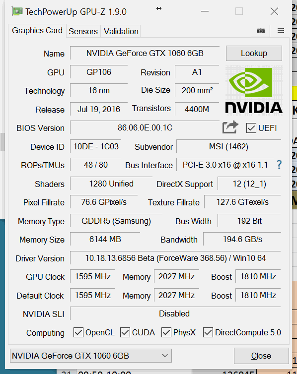 Πηγαίνοντας τώρα στις επιδόσεις της κάρτας σε συνθήκες gaming, η MSI GTX1060 Gaming X είναι overclocked, με το πυρήνα να είναι χρονισμένος στα 1597Mhz και το boost να φτάνει στα 1810MHz (αν και στην πράξη, κατά τη διάρκεια των μετρήσεων, το boost ήταν πάντα στα 1950MHz), ενώ οι μνήμες λειτουργούν στα 8,1Ghz.
