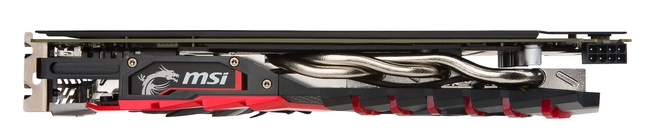 Το μήκος της είναι μεγάλο, αντίστοιχο με αυτό των GTX1070/GTX1080, κάτι που πρέπει να προσέξει κανείς για να σιγουρευτεί ότι χωράει στο κουτί του, με το PCB της να ειναι σχεδιασμένο από την MSI, ενώ χρησιμοποιεί υλικά επιπέδου Military Class 4. Στο πίσω μέρος της βρίσκουμε τις εξόδους εικόνας, πέντε στο σύνολο, με μια DVI, μια HDMI 2.0b και τρεις Display Port 1.4, με την κάρτα να μπορεί να οδηγήσει ταυτόχρονα έως τέσσερις οθόνες. Αξίζει επίσης να αναφέρουμε πως η πλάτη της καλύπτεται από μια μεταλλική επιφάνεια (backplate), η οποία προσφέρει αυξημένη στιβαρότητα και προστασία, από πλευράς εισόδων τροφοδοσίας διαθέτει μια 8πινη (αντί της 6pin που έχει η reference σχεδίαση της Nvidia). H απουσία SLI connectors κάνει εντύπωση, κάτι που σημαίνει πως ο κάτοχός της δεν μπορεί να κάνει SLI. Δε μπορούμε να αντιληφθούμε το λόγο της συγκεκριμένης παραχώρησης, παρά μόνο ίσως το γεγονός ότι η Nvidia δεν θέλει να "κανιβαλιστούν" οι πωλήσεις των ακριβότερων GTX1070/1080 από διπλές GTX1060.
