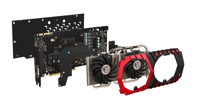 Το μήκος της είναι αρκετά μεγάλο, κάτι που πρέπει να προσέξει κανείς για να σιγουρευτεί ότι χωράει στο κουτί του, με το PCB της να ειναι σχεδιασμένο από την MSI, έχοντας 10 layers και χρησιμοποιώντας υλικά επιπέδου Military Class 4. Στο πίσω μέρος της κάρτας βρίσκουμε τις εξόδους εικόνας, πέντε στο σύνολο, με μια DVI, μια HDMI 2.0b και τρεις Display Port 1.4, με την κάρτα να μπορεί να οδηγήσει ταυτόχρονα έως τέσσερις οθόνες. Αξίζει επίσης να αναφέρουμε πως η πλάτη της καλύπτεται από μια μεταλλική επιφάνεια (backplate), η οποία προσφέρει αυξημένη στιβαρότητα και προστασία, από πλευράς εισόδων τροφοδοσίας διαθέτει μια 8πινη και μια 6πινη, ενώ επίσης βρίσκουμε και δυο SLI connectors, οι οποίοι απαιτούν νέο SLI bridge για να λειτουργήσουν.