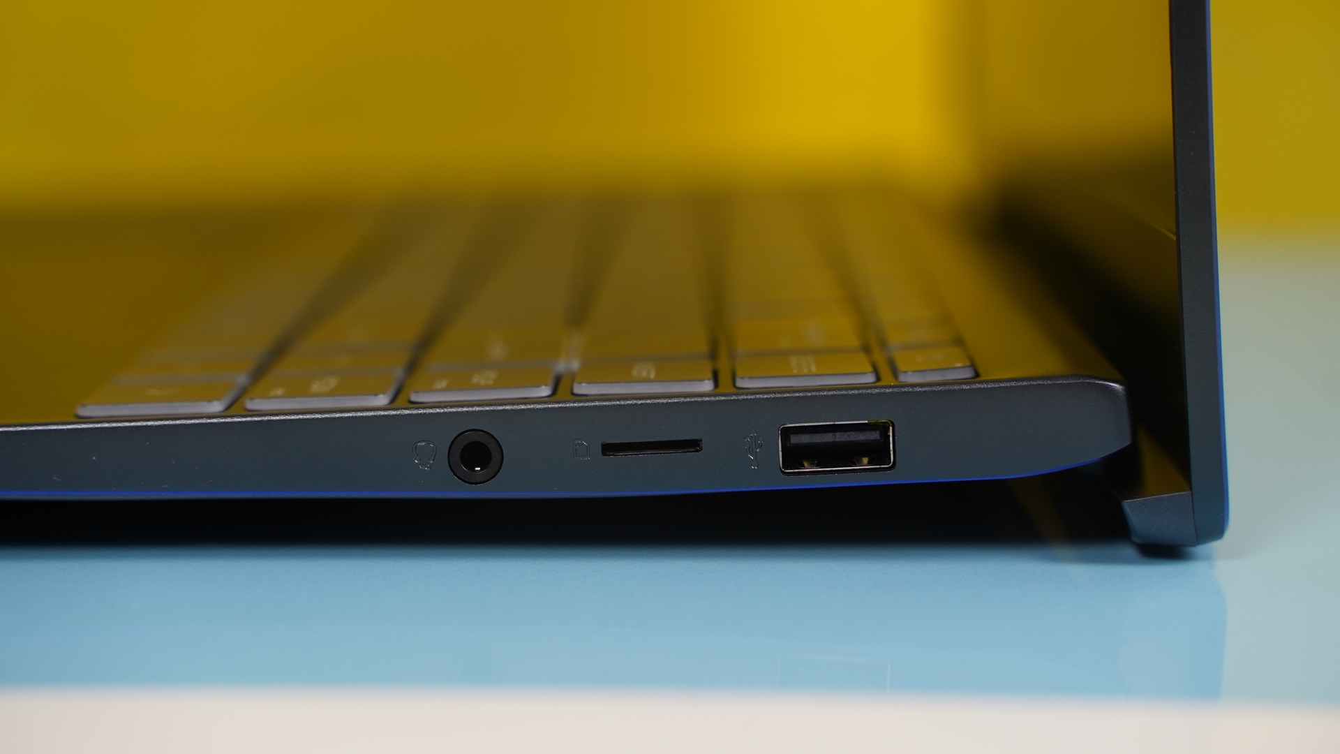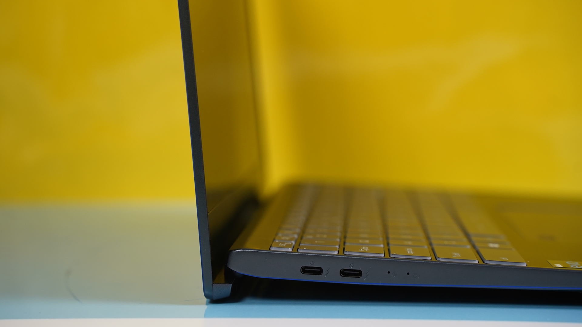 Από πλευράς θυρών, βρίσκουμε μια Type-A USB 2.0, ένα micro SD card reader και έξοδο ακουστικών σστη δεξιά πλευρά, ενώ στην αριστερή πλευρά έχουμε δυο Type-C USB 3.2 που μπορούν να χρησιμοποιηθούν για τη φόρτιση ενώ λειτουργούν και σας έξοδος εικόνας, Ανασηκώνοντας την οθόνη, ερχόμαστε σε άμεση επαφή με την εικόνα που θα έχει όποιος χρησιμοποιεί το MSI Prestive 14 Evo.