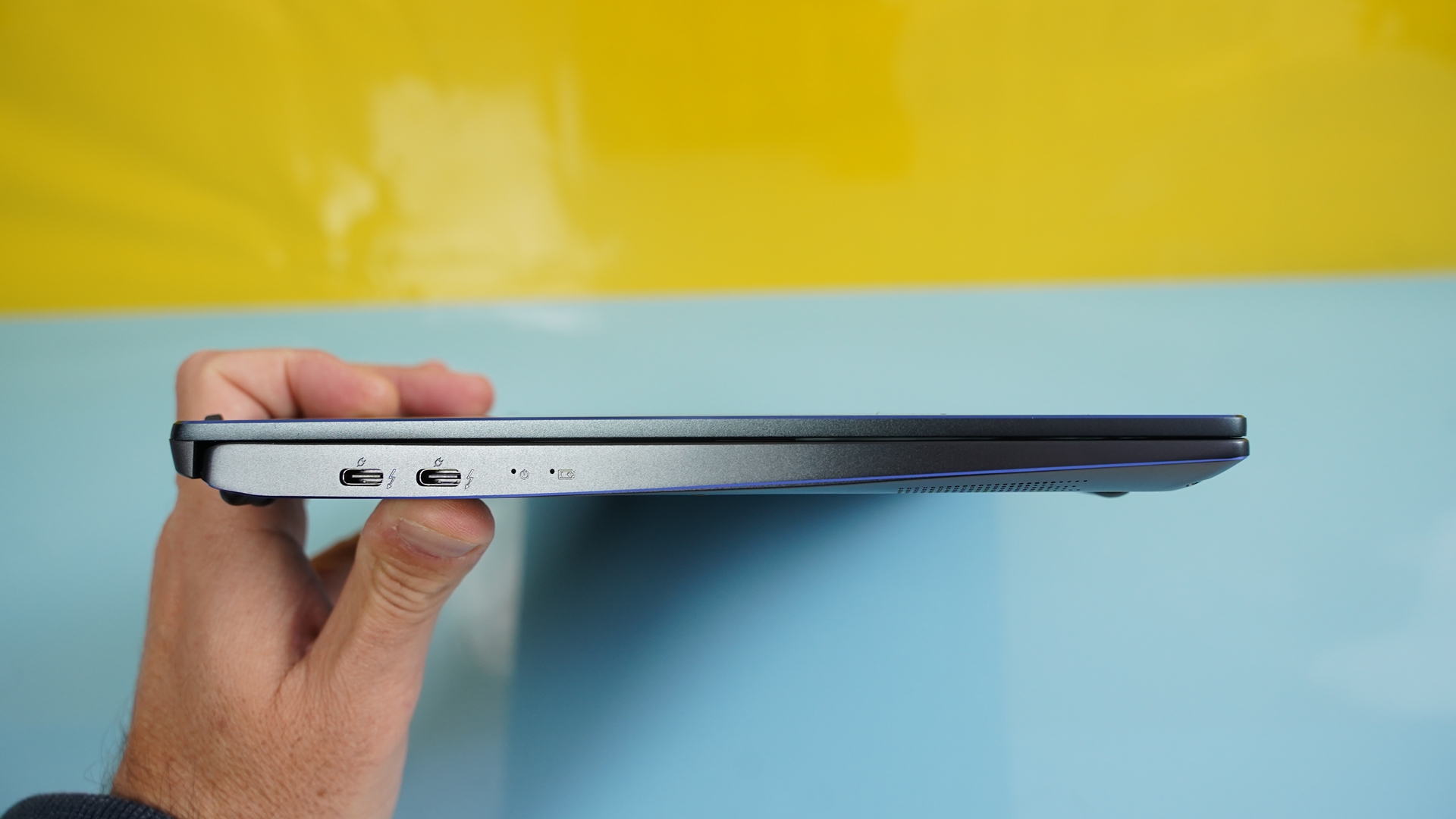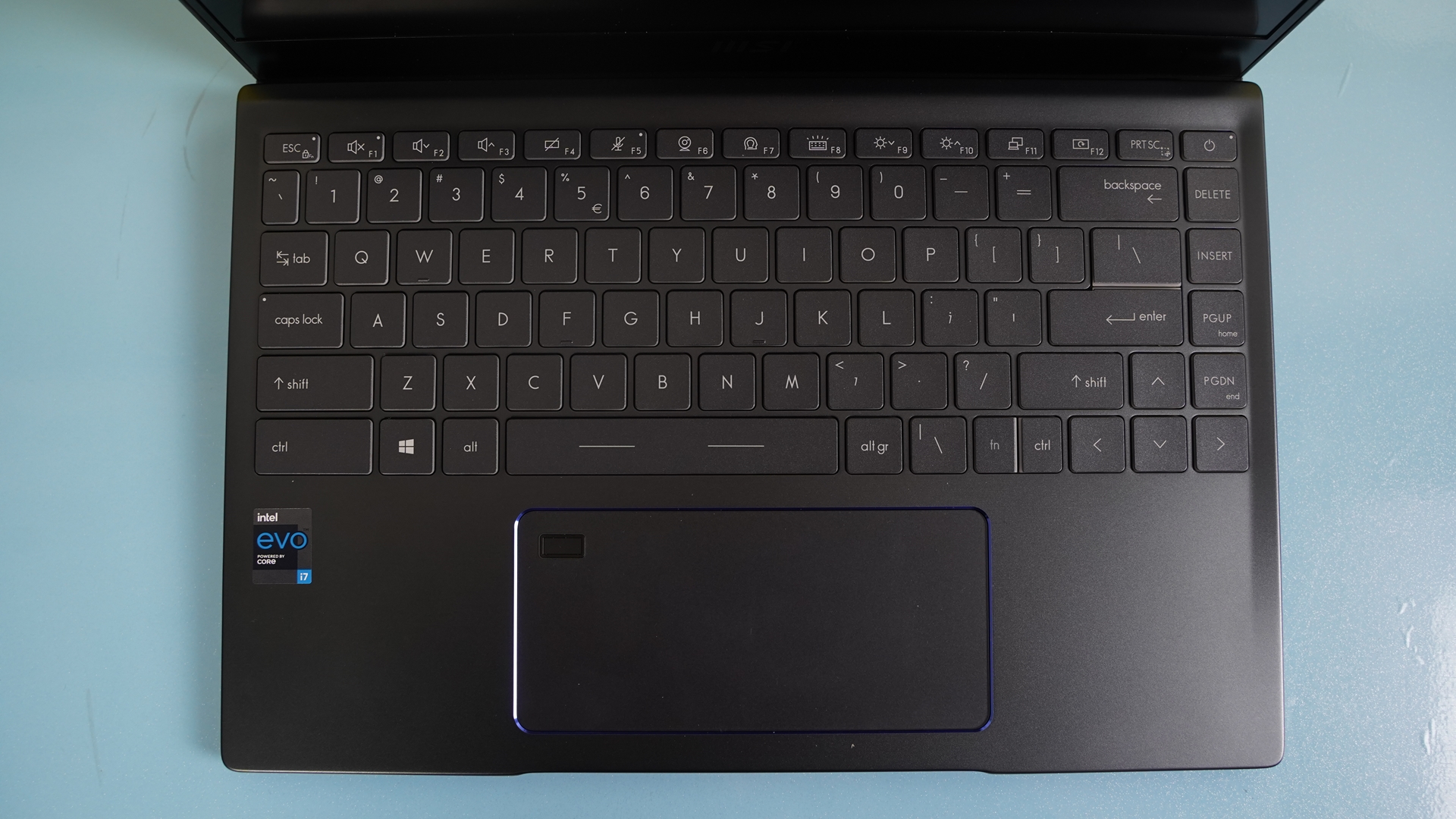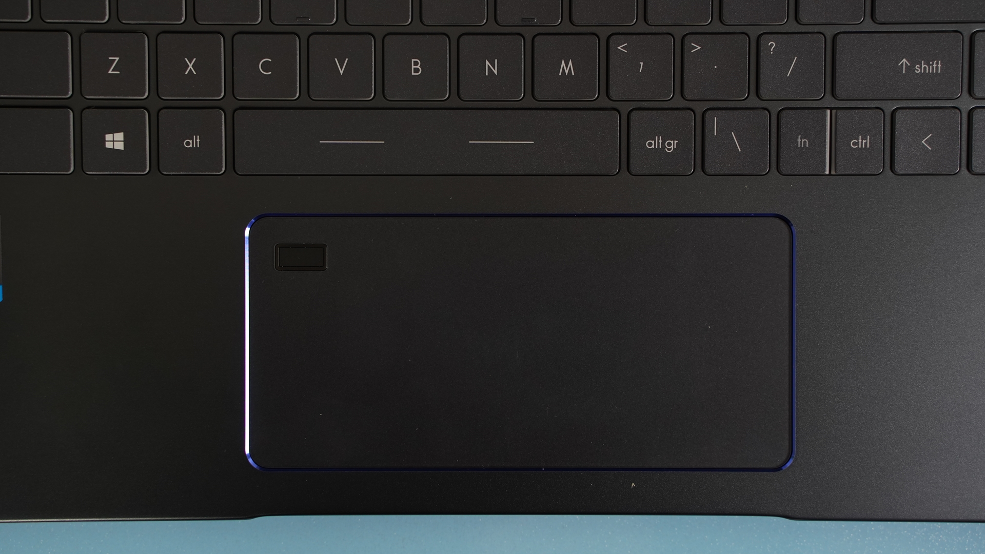 Επιπλέον, στο πάνω αριστερό μέρος του πραγματικά μεγάλου σε επιφάνεια touchpad, βρίσκεται ένας αναγνώστης δακτυλικών αποτυπωμάτων (και αυτός Windows Hello συμβατός) και έτσι ο χρήστης έχει δυο γρήγορους και ασφαλείς τρόπους να κάνει login στα Windows. Επιστρέφοντας στην οθόνη, πρέπει να σημειώσουμε πως η περίμετρος της είναι κάπως «κοφτερή» κάτι που προφανώς έχει να κάνει και με το πώς κόπηκε το μέταλλο που περιβάλλει το panel. Επίσης, όντας εξαιρετικά λεπτή, υφίσταται στρέψη εφόσον κάποιος τη πίεση και άρα χρειάζεται λίγο προσοχή κατά τη χρήση της.