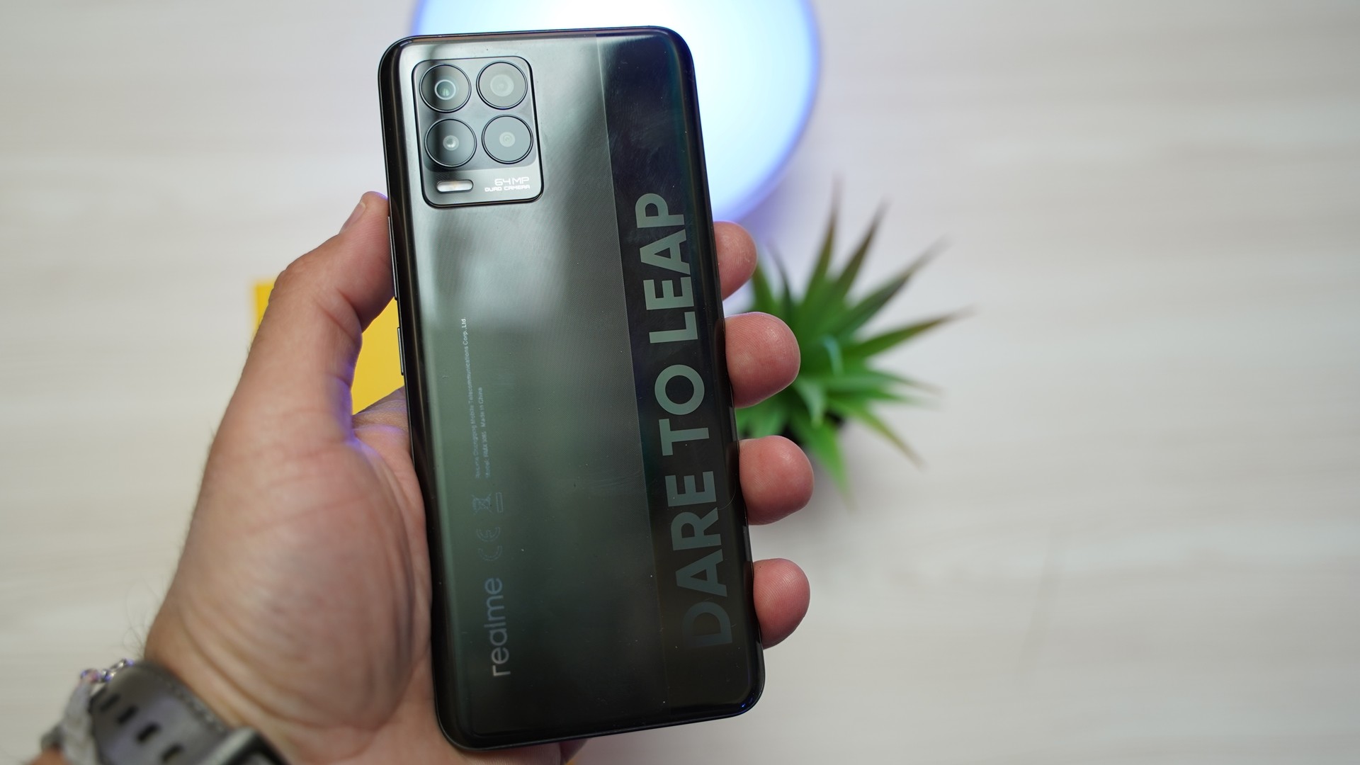 Το τηλέφωνο στο χέρι έχει εξαιρετική αίσθηση, κρατιέται πολύ καλά με το ένα χέρι, ενώ τα δάχτυλα φτάνουν χωρίς κόπο στα πλήκτρα ελέγχου. Η πλάτη της συσκευής δεν είναι ίδια με αυτή του Realme 8 Pro καθώς είναι περισσότερο γυαλιστερή με αποτέλεσμα να μένουν πάνω της τα δαχτυλικά αποτυπώματα, Όμως και εδώ έχουμε μια μεγάλη εκτύπωση του moto “Dare to Leap”. Στη πλάτη συναντάμε επίσης και το τετραπλό σύστημα καμερών οι οποίες είναι τοποθετημένες σε δυο ζεύγη, το ένα κάτω από το άλλο, ενώ παρέα τους βρίσκεται και το Led Flash.