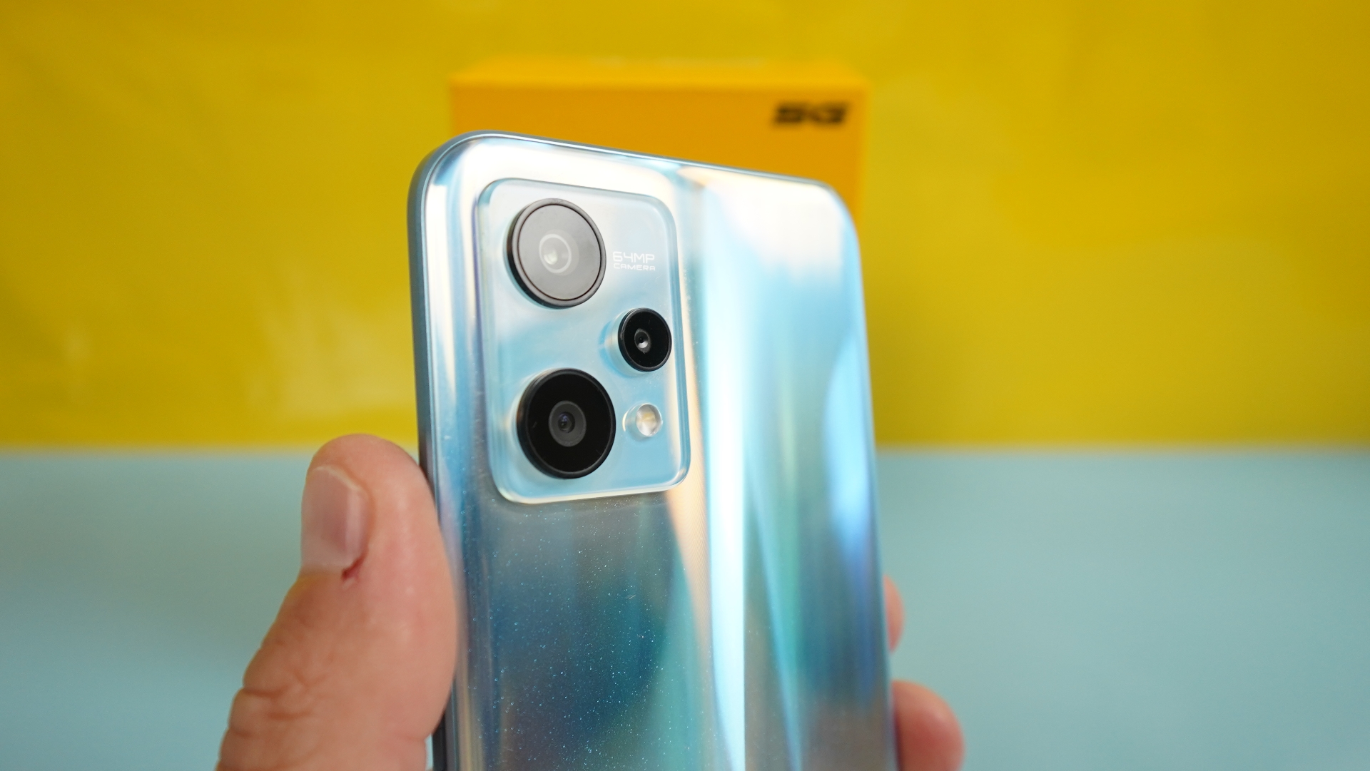 Η πλάτη είναι πλαστική και στην έκδοση που είχαμε στα χέρια μας για τις δοκιμές, είχαμε το χρώμα Sunrise Blue, το οποίο η realme το αναφέρει σαν χρώμα χαμαιλέων καθώς σε συνθήκες κανονικού ηλιακού ή υπεριώδους φωτός, το πίσω κάλυμμα αλλάζει εντελώς χρώμα από μπλε σε κόκκινο σε περίπου 3 δευτερόλεπτα. Όταν δεν εκτίθεται στο φως του ήλιου, η αλλαγή χρώματος εξασθενεί σε 2-5 λεπτά. Η αλήθεια είναι πως το «εφέ» έχει το ενδιαφέρον του και κάνει το τηλέφωνο να ξεχωρίζει.