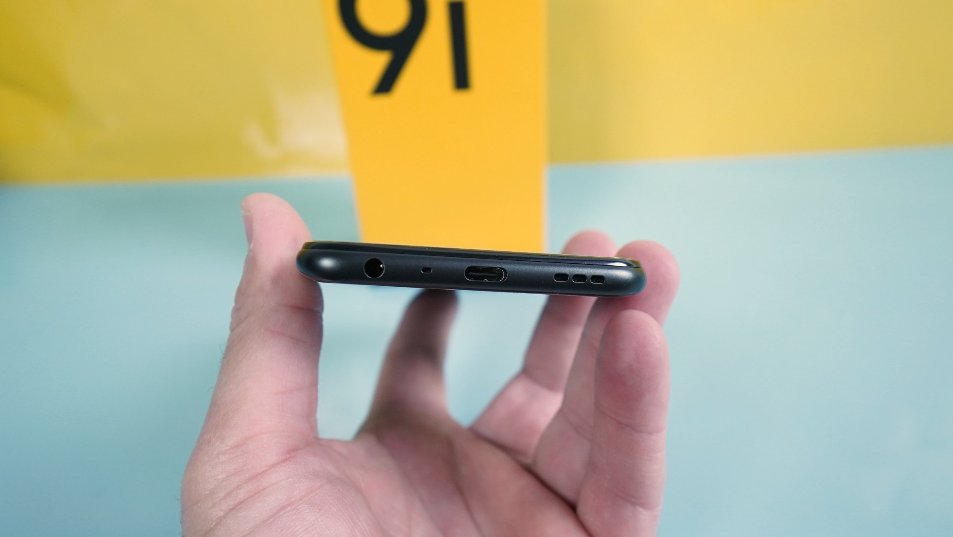 Στη δεξιά πλευρά της συσκευής, σε μια εσοχή, είναι το power button το οποίο παίζει και το ρόλο του αισθητήρα δακτυλικών αποτυπωμάτων, ο οποίο λειτουργεί γρήγορα και με ακρίβεια. Τα volume controls και η θέση για τοποθέτηση των καρτών sim είναι στην αριστερή πλευρά έχουμε. Το τηλέφωνο δέχεται δυο κάρτες SIM (το τηλέφωνο είναι συμβατό με δίκτυα 4G) ενώ μπορεί επιπλέον να δεχτεί και κάρτες micro SD. Στο κάτω μέρος έχουμε ένα τυπικό σε ένταση και ποιότητα ηχείο, έξοδο ακουστικών και τη θύρα Type-C USB. Το τηλέφωνο στο χέρι έχει καλή αίσθηση, κρατιέται πολύ καλά με το ένα χέρι, ενώ τα δάχτυλα φτάνουν χωρίς κόπο στα πλήκτρα ελέγχου. Η πλάτη της συσκευής είναι από πλαστικό και εκεί βρίσκεται και το τριπλό σύστημα καμερών παρέα με το Led flash.