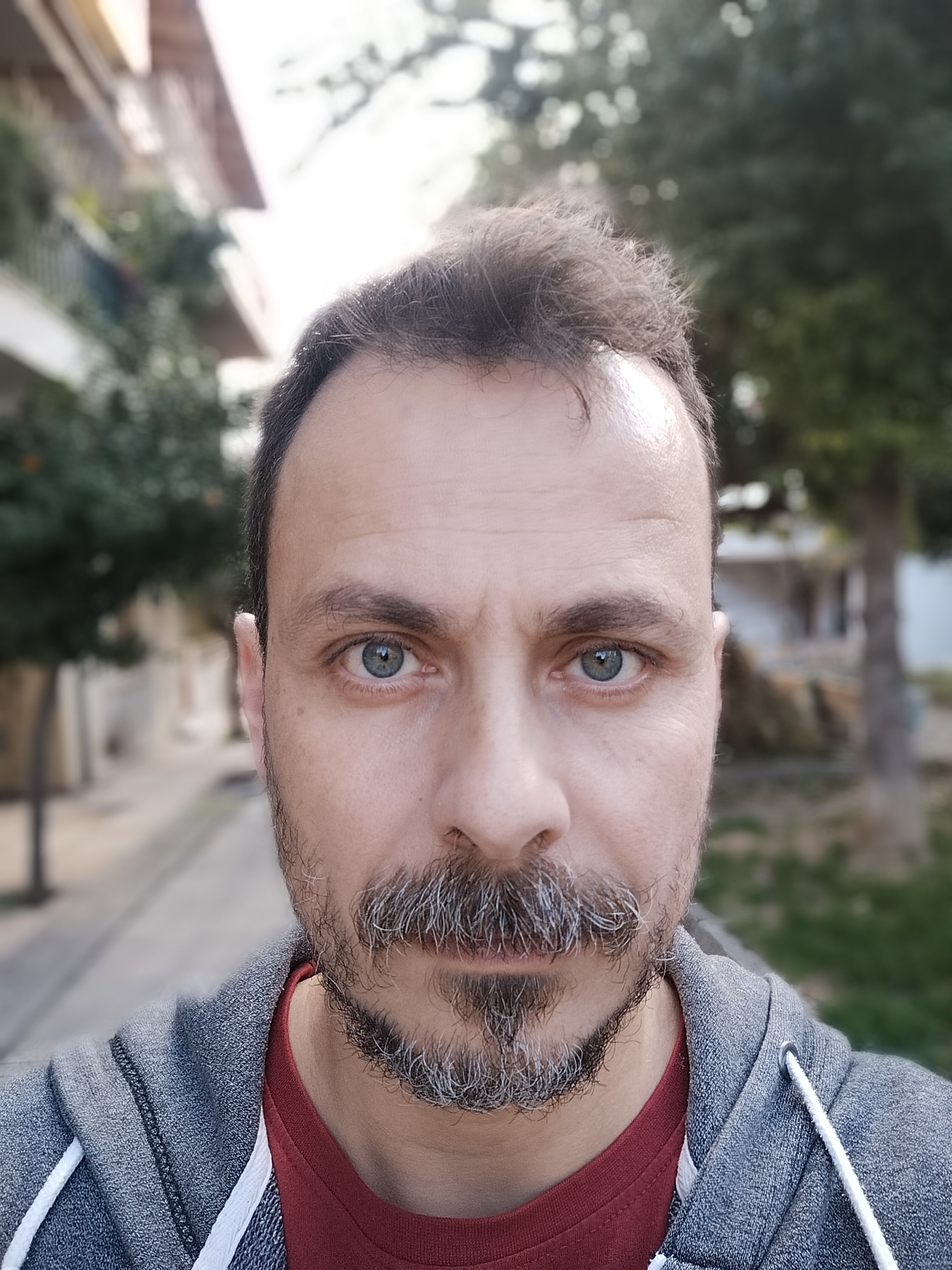 Λήψεις με το selfie φακό, μέρα (με συννεφιά) χωρίς/με portrait mode