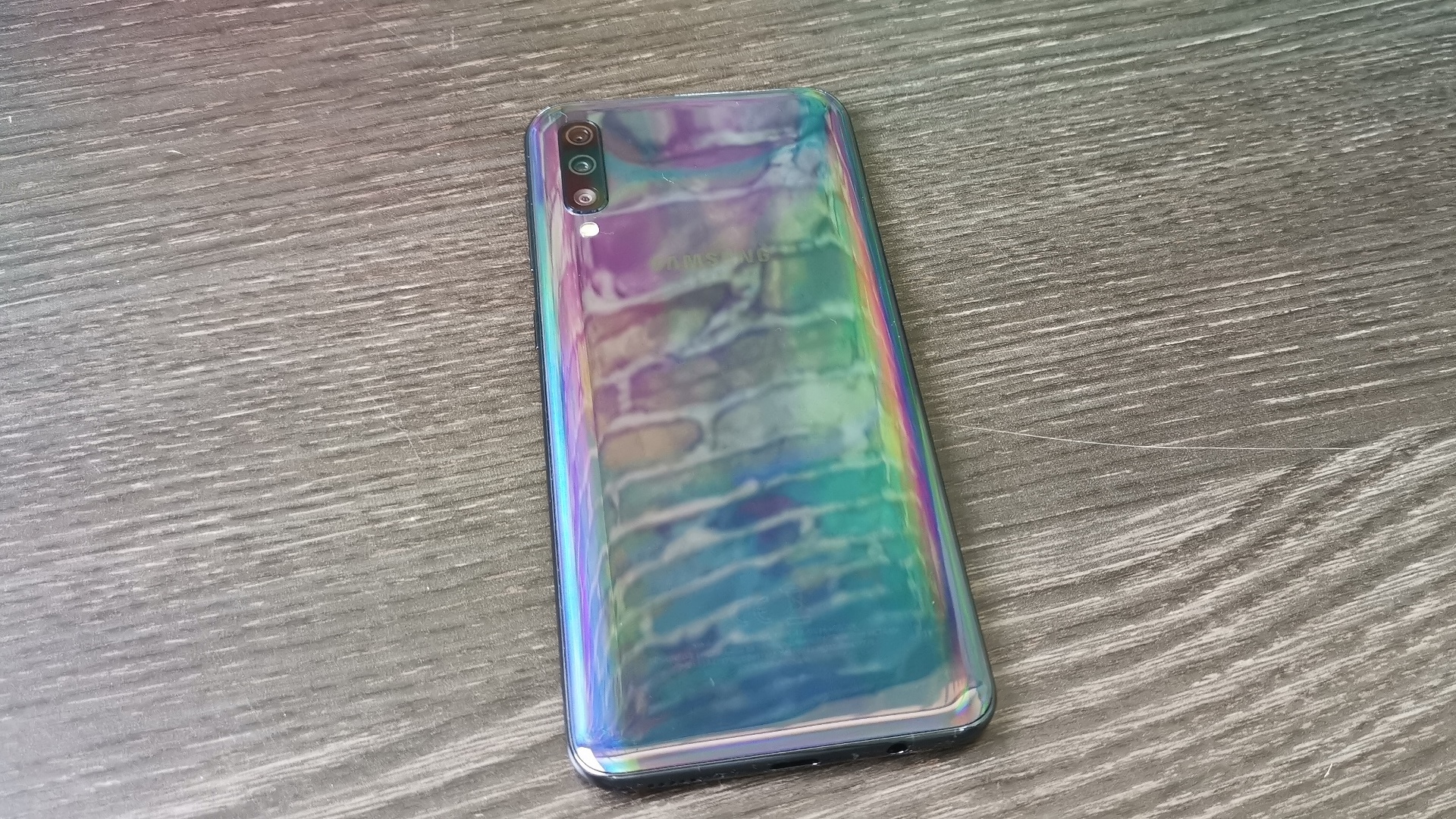 Το πίσω μέρος της συσκευής είναι πλαστικό, ωστόσο το εξαιρετικό χρώμα που έχει επιλέξει η Samsung και η υφή του πλαστικού κάνουν την πλάτη να φαίνεται γυάλινη. Εκεί βρίσκουμε τις τρεις κάμερες της συσκευής, αριθμός που τείνει να γίνει στάνταρ ακόμα και στα midrange τηλέφωνα. Τρεις κάμερες λοιπόν, εκ των οποίων οι δυο είναι αξιοποιήσιμες, μια κανονική 24Mpixel με f/1.7 και μια ultrawide στα 8Mpixel και με f/2.2. Η τρίτη χρησιμοποιείται αποκλειστικά για να δίνει πληροφορίες βάθους στο software, ούτως ώστε να μπορεί αυτό να δημιουργήσει τα γνωστά bokeh εφέ και βασίζεται σε αισθητήρα 5Mpixel με φακό f/2.2. Στα ενδότερα της συσκευής δεν έχουμε κάτι το εντυπωσιακό, βρίσκοντας το Exynos 9610 SoC της Samsing, ένα οκταπύρηνο chip που συνοδεύεται από 4GB μνήμης (θα θέλαμε την έκδοση με 6GB). Η ενσωματωμένη μπαταρία έχει χωρητικότητα 4000mAh και προσφέρει επαρκή αυτονομία για 1,5 μέρα χρήσης. Η φόρτιση της συσκευής όμως παίρνει αρκετό χρόνο, καθώς υποστηρίζει μεν ταχεία φόρτιση, αλλά τα 15Watt δεν ενθουσιάζουν. Προφανώς και δεν υπάρχει ούτε ασύρματη φόρτιση. Όσον αφορά στον αισθητήρα δακτυλικού αποτυπώματος, αυτός έχει ενσωματωθεί μέσα στην οθόνη, λειτουργεί αρκετά γρήγορα και με επιτυχία τις περισσότερες φορές, αλλά πρέπει ο χρήστης να κεντράρει σωστά το δάχτυλό του στο ειδικό σημείο της οθόνης. Λείπει όμως οποιαδήποτε αδιαβροχοποίηση της συσκευής, κάτι σημαντικό για αρκετό κόσμο.
