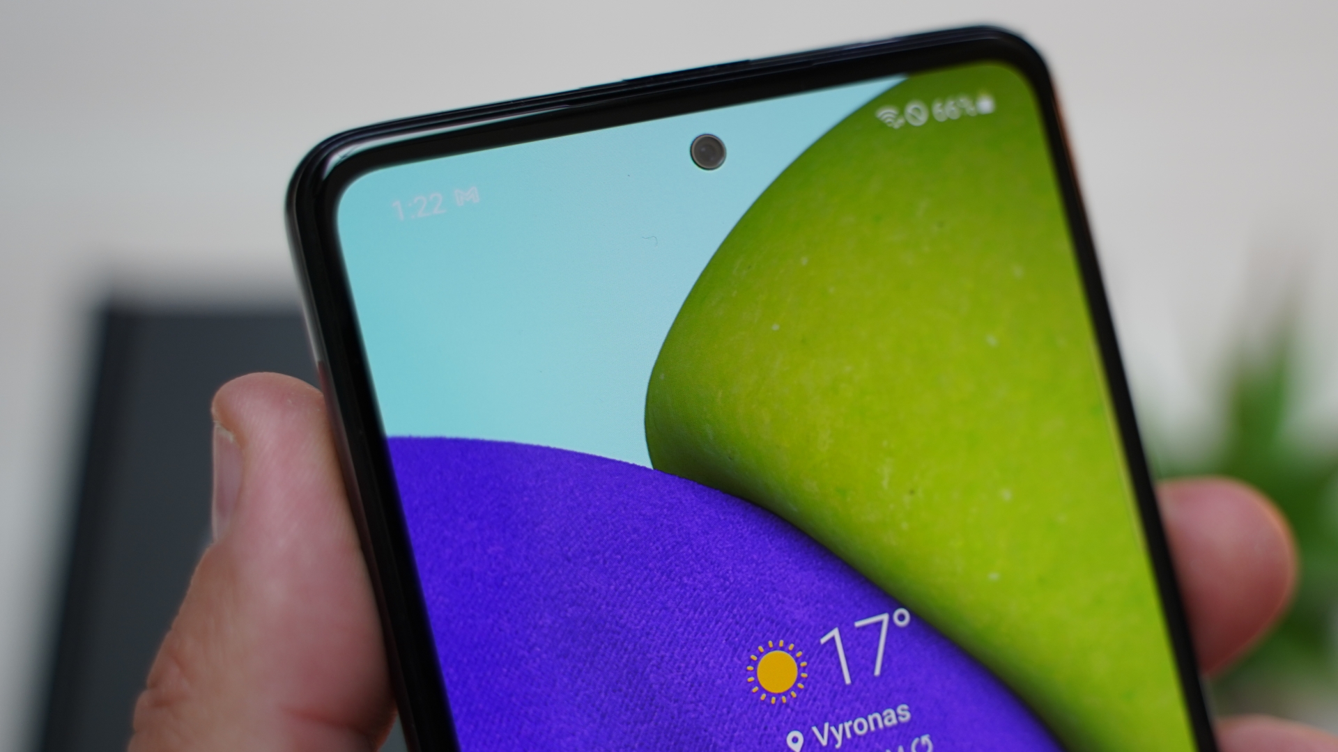Τα bezel της συσκευής είναι ορατά στις τρεις πλευρές ενώ στο κάτω μέρος είναι μεγαλύτερο. Στη δεξιά πλευρά βρίσκουμε τα πλήκτρα αυξομείωσης της έντασης του ήχου μαζί με το power button. Στα αριστερά υπάρχει η θέση για τις δυο κάρτες SIM και την κάρτα micro SD μέχρι 1ΤB (ή 2 Sim ή 1 και microSD). ! Στο κάτω μέρος έχουμε την έξοδο ακουστικών, το βασικό ηχείο και μια θύρα USB Type C. Στο πάνω μέρος και μέσα στην οθόνη υπάρχει κεντρικά τοποθετημένη η selfie cam Ακριβώς πάνω από την κάμερα, πάνω σχεδόν στο πλαίσιο του τηλεφώνου, υπάρχει το ακουστικό το οποίο παίζει και το ρόλο δεύτερου ηχείου. Ο ήχος που βγάζει το Galaxy A52 έχει καλή ένταση με τον ήχο να είναι ισορροπημένος, ενώ σημαντικό είναι και το γεγονός ότι προσφέρει υποστήριξη Dolby Atmos. Μάλιστα, μέρα από τις ρυθμίσεις της συσκευής μπορεί κανείς να επιλέξει τι είδους βελτιστοποίηση θα προσφέρεται μεταξύ τεσσάρων επιλογών: Auto, Movie, Music και Voice. Υπάρχει δε ειδική επιλογή που ενεργοποιεί τη λειτουργία Dolby Atmos για παιχνίδι, ενώ προσφέρεται και ξεχωριστό equalizer με 5 έτοιμες προρυθμίσεις ανάλογα με το είδος μουσικής και μια custom μέσω της οποίας προσφέρεται η δυνατότητα ρύθμισης των συχνοτήτων. Γενικότερα, το Samsung Galaxy A52 είναι μια συσκευή που αφήνει εξαιρετικές εντυπώσεις από πλευράς ήχου, ειδικά αν αναλογιστούμε τη κατηγορία τιμής του.