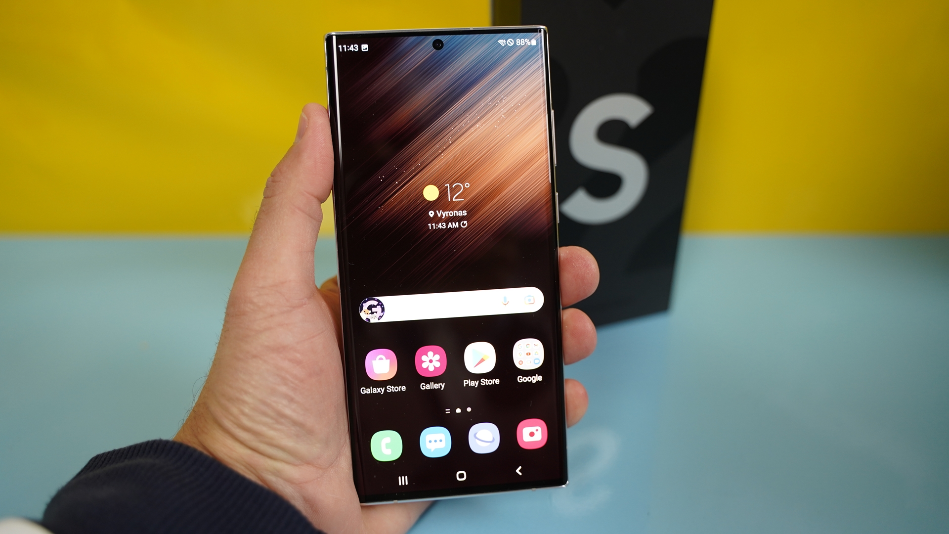 Η διαγώνιος είναι 6,8’’ και στην πραγματικότητα, όλη σχεδόν η πρόσοψη καλύπτεται από τη πανέμορφη, φωτεινή και με υπέροχα χρώματα Dymanic AMOLED 2X οθόνη ανάλυσης 3080x1440 pixel. Το γυαλί πάνω από την οθόνη είναι το τεχνολογίας Gorilla Glass Victus+ (όπως και η πλάτη), το οποίο είναι και το ανθεκτικότερο όλων. Τα bezel είναι ανύπαρκτα, με την οθόνη στο πλάι να είναι αρκετά κυρτή κάτι που κάποιοι θα αγαπήσουν και κάποιοι θα ξενερώσουν. Το μοναδικό που μπορεί να ενοχλήσει κάποιους λίγους, είναι η -μικρή πάντως- τρύπα στο πάνω μέρος για τη selfiecam. Ακόμα και το κεντρικό ακουστικό είναι καλά κρυμμένο. Είναι πραγματικά χάρμα οφθαλμών, προσφέροντας εξαιρετικά χρώματα (και αρκετές ρυθμίσεις μέσα από τις σχετικές επιλογές), άριστες γωνίες θέασης και υψηλή φωτεινότητα. Σύμφωνα με τη Samsung, η μέγιστη φωτεινότητα της οθόνης φτάνει στα 1750nits, κάτι βέβαια που επιτυγχάνεται μόνο σε περιβάλλον HDR και προφανώς μάλλον σε κάποιο μικρό κομμάτι της οθόνης. Εμείς καταφέραμε να μετρήσουμε 1500nits σε HDR με λευκό παράθυρο που καλύπτει περίπου το 20% της οθόνης. Σε κανονικές συνθήκες, η μέγιστη τιμή φωτεινότητας που μετρήσαμε έφτασε στα 680nits. Το panel είναι high refresh και υποστηρίζει 120Hz και στη στη μέγιστη ανάλυση του. Το frame rate να είναι μεταβλητό, δηλαδή η οθόνη δε λειτουργεί πάντα στα 120Hz αλλά ο ρυθμός ανανέωσης αυξομειώνεται ανάλογα με το τι τρέχει στην οθόνη, με το ελάχιστο frame rate να μπορεί να φτάσει ακόμα και το 1Hz, ώστε να εξοικονομείται ενέργεια. Η οθόνη επιπλέον προσφέρει πλήρη υποστήριξη σε HDR10+, κάτι που καθιστά τη θέαση σχετικού περιεχομένου ακόμα καλύτερη. Κάτι άλλο που έχει προσθέσει στην οθόνη η Samsung είναι η τεχνολογία Vision booster. Χρησιμοποιώντας την AI του επεξεργαστή, το τηλέφωνο ρυθμίζει καλύτερα τα pixel της οθόνης όταν αυτή βρίσκεται κάτω από το ηλιακό φως και αυξάνει τη φωτεινότητα στο μέγιστο, ούτως ώστε να μην βγαίνει ξεπλυμένη η εικόνα (λόγω της υψηλής φωτεινότητας) αλλά να έχει σωστή απεικόνιση. Στη πράξη, αυτό που παρατηρήσαμε είναι πως το panel ακόμα και κάτω από το έντονο ηλιακό φως, είναι μια χαρά ευκρινές.