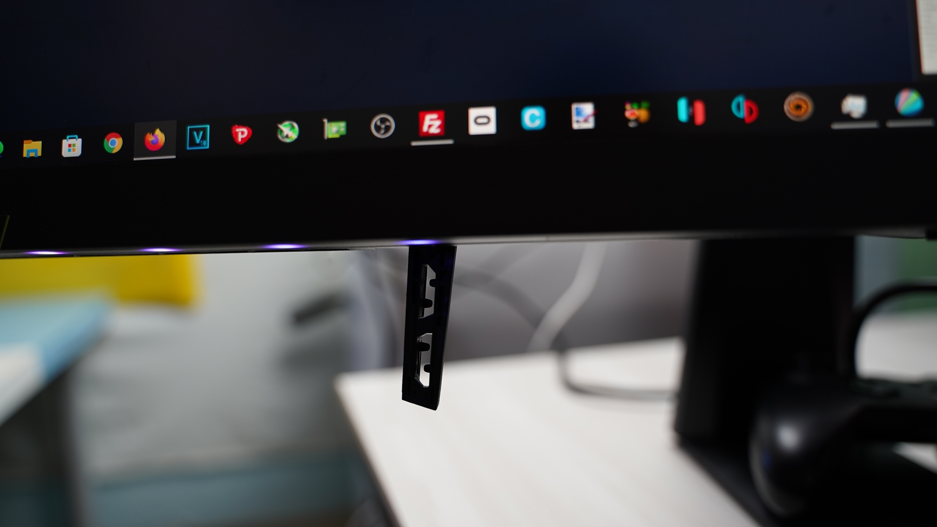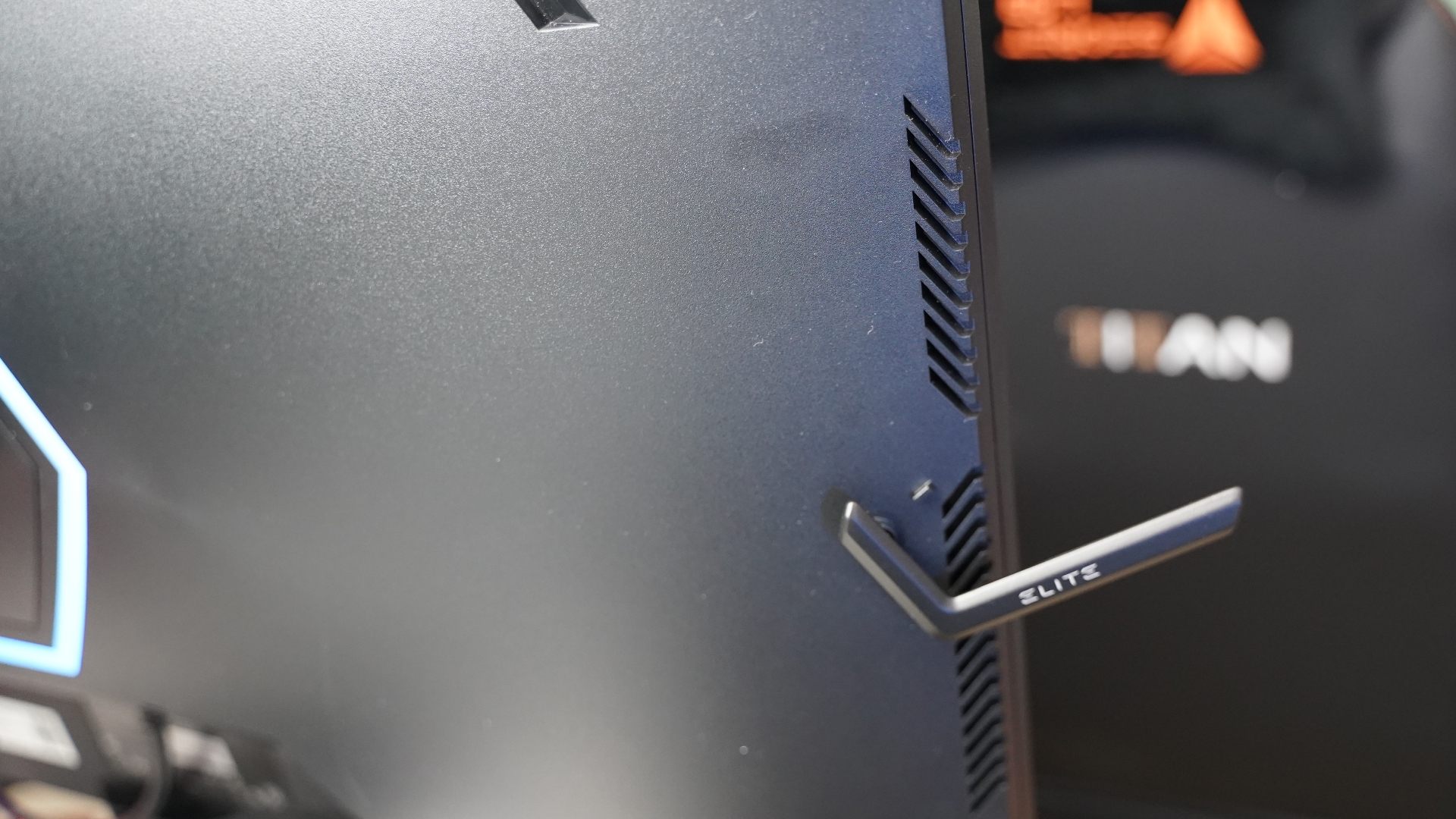 Όμως το monitor έχει και άλλα, περισσότερο χρήσιμα χαρακτηριστικά. Στην αριστερή πλευρά όπως κοιτάμε το panel, περίπου στο μέσο του ύψους βρίσκουμε στη πλάτη ένα «μοχλό» που κατεβαίνει και μετατρέπεται σε μια βάση για να κρεμάσουμε τα ακουστικά μας.