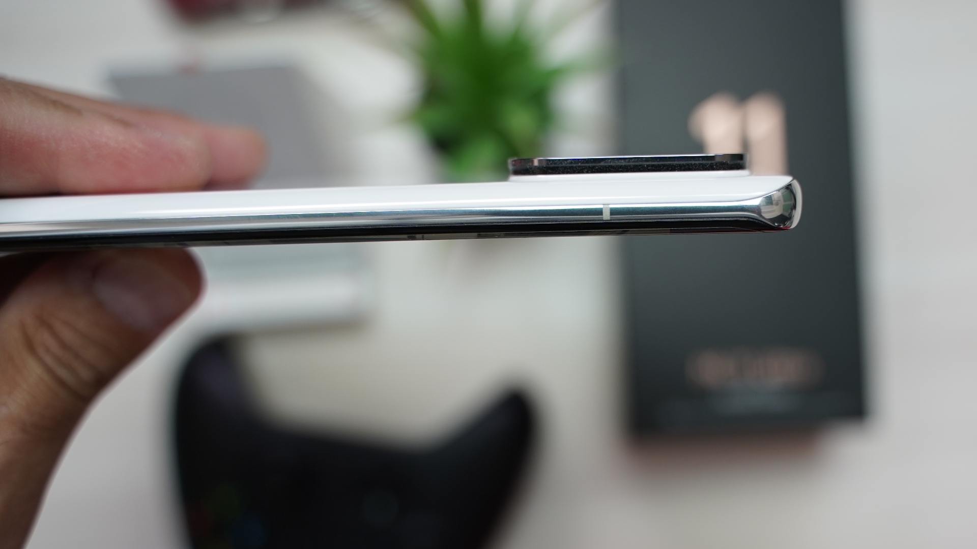 Παίρνοντας τώρα το τηλέφωνο στο χέρι, αυτό που παρατηρεί κανείς αμέσως είναι το μέγεθος και το βάρος του, το οποίο είναι πάνω από τα 230 γραμμάρια. Είναι πραγματικά μεγάλο και το νοιώθει κανείς βαρύ, χωρίς όμως να γίνεται κουραστικό. Ποιοτικά και κατασκευαστικά, η συσκευή παίρνει άριστα, συνδυάζοντας αρμονικά γυαλί μπροστά (Gorilla Glass Victus ) και αλουμίνιο περιμετρικά. Η πλάτη πάλι έχει κεραμική επίστρωση, προσφέροντας στο τηλέφωνο εξαιρετική premium αίσθηση στο χέρι χωρίς αυτή να αποτυπώνει τα δάχτυλα του χρήστη πάνω της.