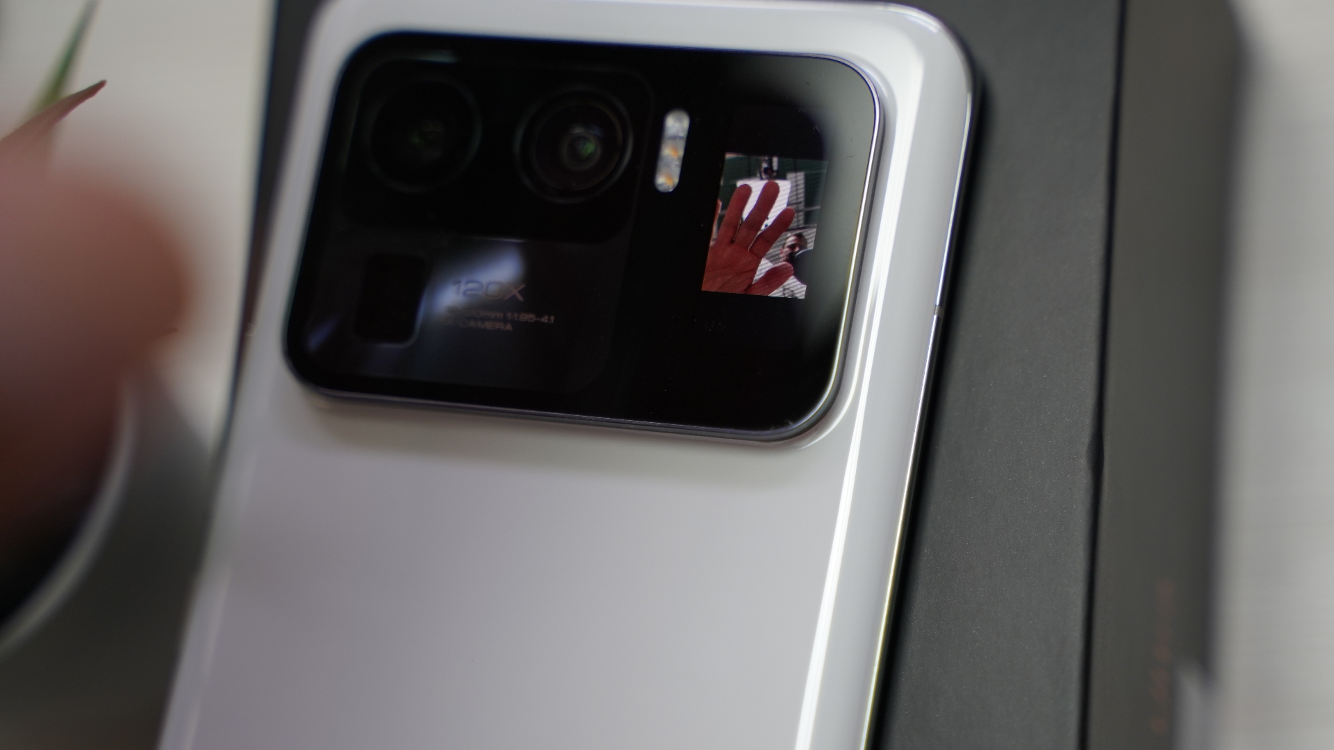 Πηγαίνοντας στο πίσω μέρος, από τη μια θαυμάζουμε το λευκό χρώμα της συσκευής και από την άλλη δε μπορούμε να πάρουμε τα μάτια μας από το τεράστιο bump που βρίσκεται στο πάνω 1/3 της πλάτης, στο οποίο βρίσκεται το 3πλό σύστημα καμερών αλλά και η δεύτερη οθόνη AMOLED 1,1’’. Τόσο το εμβαδό που καταλαμβάνει όσο και το πάχος το καθιστούν με διαφορά το μεγαλύτερο camera bump που έχουμε δει μέχρι σήμερα. Από τη μια το πάχος είναι απαραίτητο για να χωρέσουν οι τρεις μεγάλοι σε μέγεθος αισθητήρες (με το βασικό να είναι ο μεγαλύτερος σε smartphone) και από την άλλη το εμβαδό δικαιολογείται από την ύπαρξη αυτής της οθόνης. Όπως αποκάλυψε η Xiaomi, πρόκειται για την ίδια οθόνη που χρησιμοποιεί το Xiaomi Mi Band 6 και η χρησιμότητά της είναι διπλή. Από τη μια μπορεί να χρησιμοποιηθεί σαν viewfinder για να βγάζει κανείς selfie με κάποια από τις κάμερες της πλάτης και από την άλλη αποτελεί μια δεύτερη οθόνη στην οποία εμφανίζεται η ώρα, η μπαταρία, ειδοποιήσεις και κάποιο εικονίδιο.