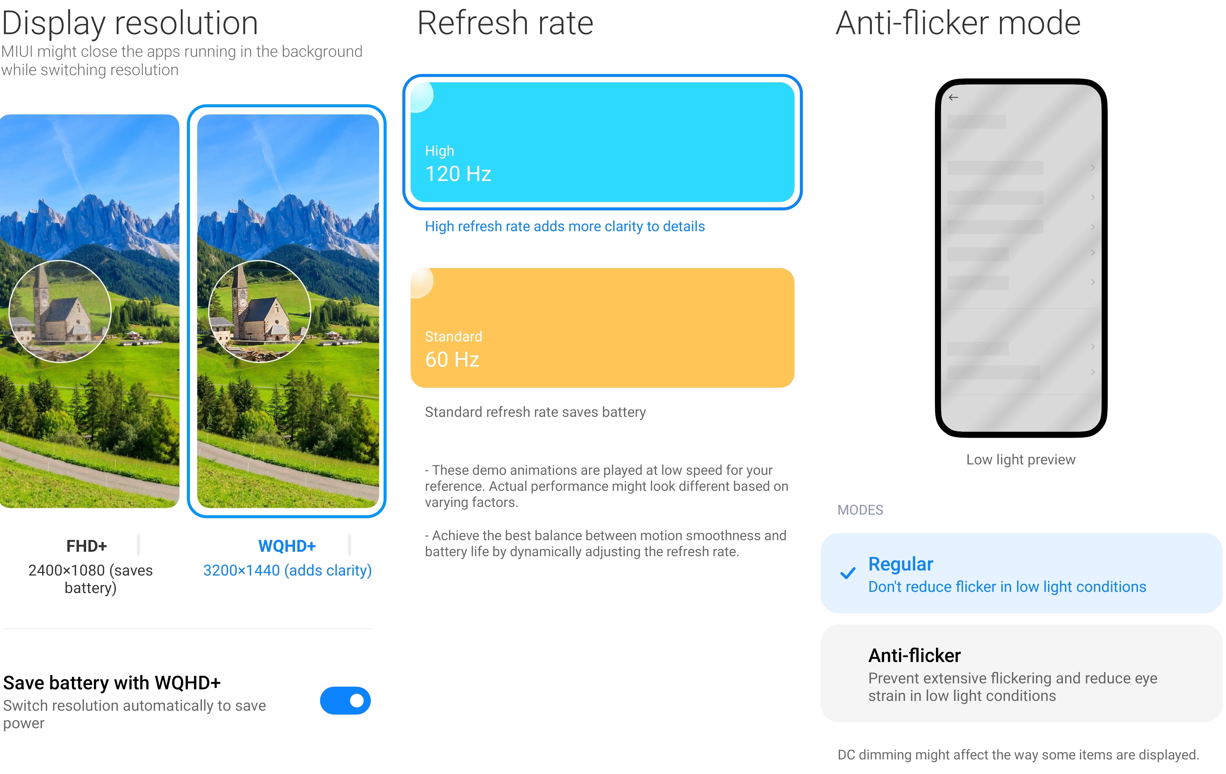 Η πρόσοψη καλύπτεται σχεδόν εξ’ ολοκλήρου από την οθόνη 6,81’’ ανάλυσης WQHD + (3200x1440) τεχνολογίας AMOLED με 10bit color. Υποστηρίζει HDR10+ αλλά και Dolby Vision ενώ μπορεί να λειτουργήσει στα 120Hz. Ελάχιστα bezel υπάρχουν στο πάνω και κάτω μέρος, ενώ η selfie κάμερα καταλαμβάνει πολύ μικρό χώρο μέσα στην οθόνη, στο πάνω αριστερό μέρος. Μέσα στην οθόνη βρίσκεται και ο οπτικός αναγνώστης δακτυλικών αποτυπωμάτων, ο οποίος είναι εξαιρετικά γρήγορος. Η ίδια η οθόνη είναι πραγματικά πανέμορφη και αγγίζει τη κορυφή. Πανέμορφα χρώματα, κορυφαία μέγιστη φωτεινότητα που της επιτρέπει να φαίνεται άνετα κάτω από το ηλιακό φως και αρκετές επιλογές από το MIUI 11 όσον αφορά στην αλλαγή χρωμάτων και γενικότερα την παραμετροποίησή της, καθώς μεταξύ άλλως υποστηρίζεται λειτουργία Anti-flicker, λειτουργία ανάγνωσης, dark mode ενώ φυσικά προσφέρει δυνατότητες ρύθμισης των χρωμάτων. Φυσικά υπάρχει επιλογή για Always On λειτουργία, η οποία επιτρέπει στο κάτοχο του τηλεφώνου να αλλάξει το τι θα δείχνει η οθόνη όταν το τηλέφωνο είναι σε κατάσταση stand by. Πραγματικά, η Xiaomi προσφέρει πλήθος από ρυθμίσεις ώστε η εικόνα να μην είναι ποτέ μονότονη. Με τη κάμερα μάλιστα να είναι πραγματικά σε σημείο που δεν ενοχλεί, μπορεί κανείς να απολαύσει άνετα βίντεο περιεχόμενο, με το Netflix μάλιστα να τη βλέπει Dolby Vision συμβατή και να παίζει περιεχόμενο με τέτοια εικόνα. Για παράδειγμα, το trailer για την επερχόμενη ταινία Black Widow δείχνει πανέμορφο στην οθόνη, με κορυφαία αντίθεση και όμορφα ζωντανά χρώματα, αλλά η εμπειρία πραγματικά απογειώνεται χάρη στον ήχο. Στο σημείο αυτό να σημειώσουμε πως η οθόνη λειτουργεί με adaptive τρόπο όσον αφορά στο refresh rate της. Έτσι, τα 120Hz είναι σε λειτουργία όταν χρησιμοποιούμε το UI, ενώ πέφτει στα 60Hz όταν βλέπουμε στατικές εικόνες ή σταματήσουμε να σκρολάρουμε ένα web site. Θεωρητικά μπορεί να πέσει ακόμα και στα 30Hz, κάτι που δε μπορέσαμε να δούμε με τα μάτια μας. Όμως μπορεί κανείς να χρησιμοποιήσει την εφαρμογή video toolbox και από εκεί να ρίξει το ρυθμό ανανέωσης της οθόνης ώστε αυτός να προσαρμοστεί στο frame rate του εκάστοτε video. Η εφαρμογή αυτή προσφέρει και πολλές ακόμα δυνατότητες για το πώς θα βλέπει και θα ακούει κανείς όταν παίζει ένα βίντεο, με ένα overlay να μπορεί να εμφανιστεί πάνω από όποια εφαρμογή θέλουμε.