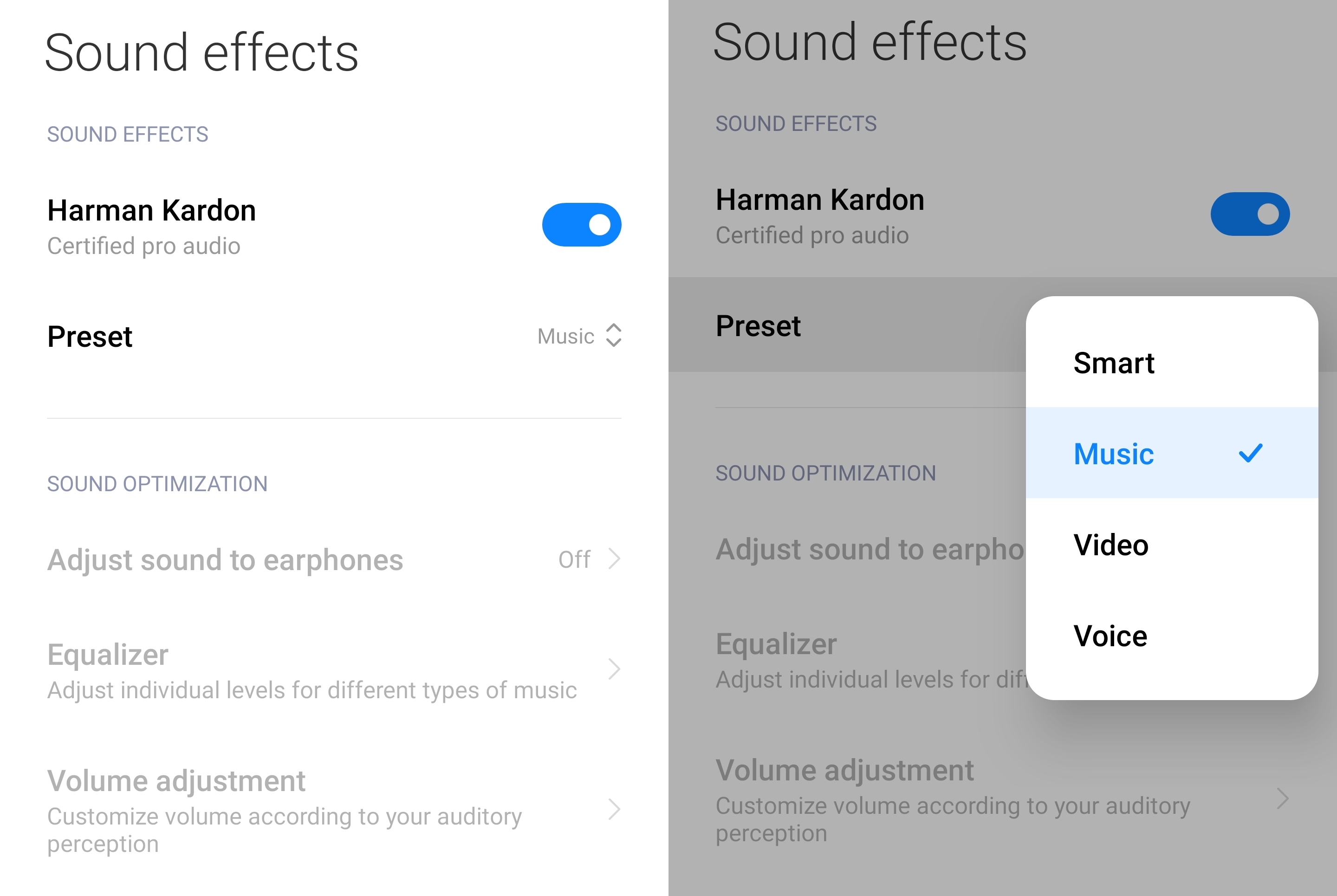 Είτε κανείς βλέπει ταινία, είτε ακούει μουσική, είτε παίζει παιχνίδια, δε θα χρειαστεί ακουστικά αφού ο ήχος είναι επιπέδου μικρού φορητού ηχείου: δυνατός και καθαρός. Μάλιστα, μέσα από τις ρυθμίσεις του λειτουργικού μπορεί κανείς να επιλέξει μεταξύ 3+1 preset ήχου (music, video, voice και smart) όταν είναι ενεργή η επιλογή Harman Kardon Certified Pro audio.