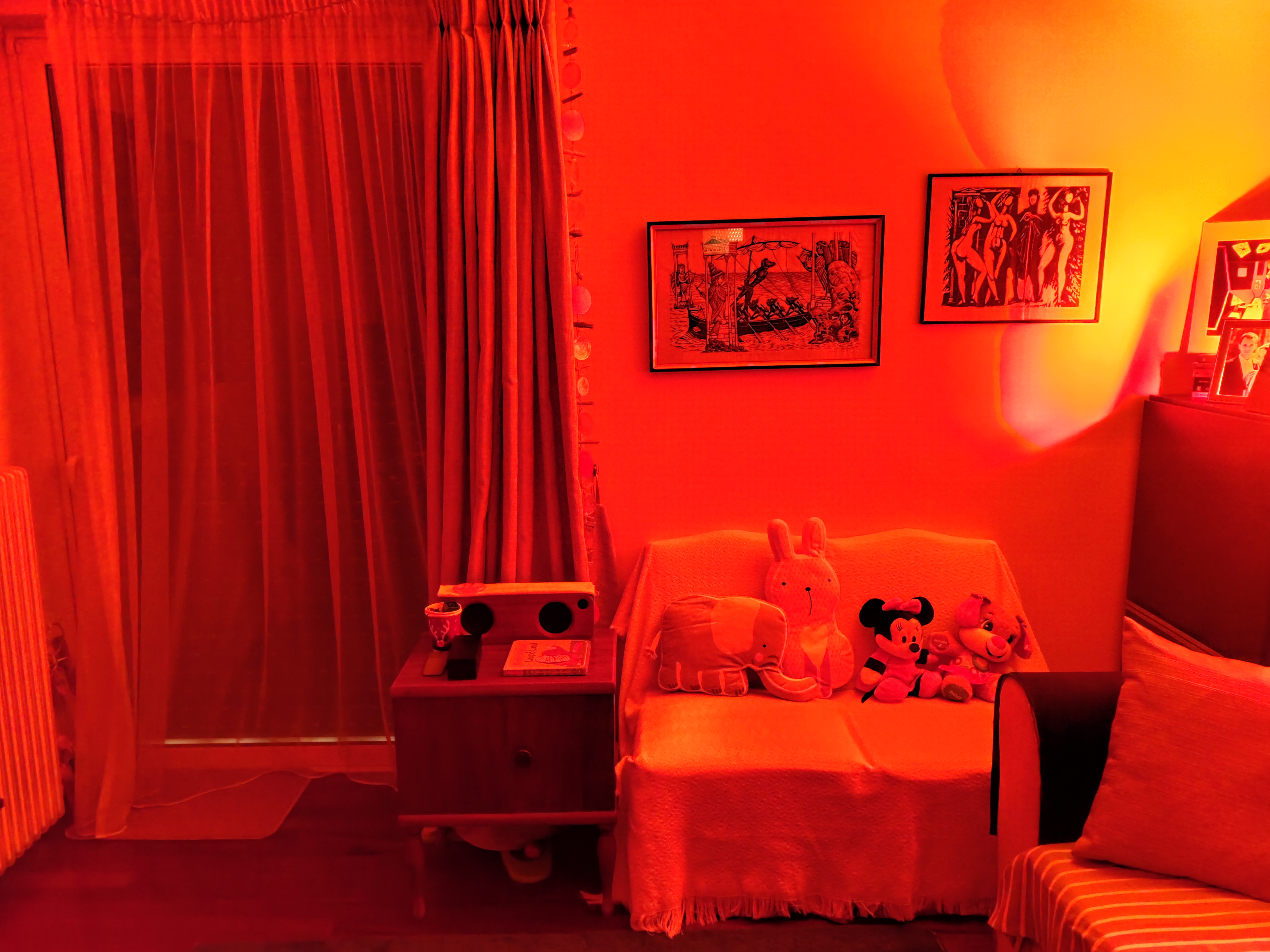 Η αριστερή φωτογραφία είναι απλή λήψη σε εσωτερικό χώρο με λίγο φωτισμό, η δεξιά είναι με το Nigh Mode.