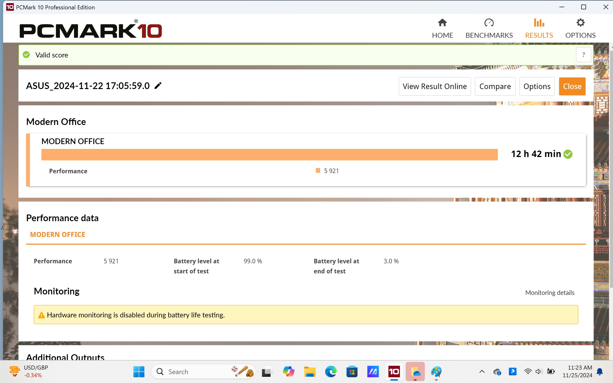 EDIT+UPDATE: Να σημειώσουμε ότι η παραπάνω μέτρηση έγινε με το Balanced προφίλ Ενέργειας των Windows 11. Ξανατρέχοντας το ίδιο τεστ του PC Mark με το Power Efficieny προφίλ, όπου οι επιδόσεις είναι ελαφρώς χειρότερες, αυτό μας έδωσε 12 ώρες και 42 λεπτά, αυτονομία δηλαδή αρκετά μεγαλύτερη. Αντίστοιχα, το Procyon Office Productivity Battery Test μας έδωσε 11 ώρες και 45 λεπτά.
