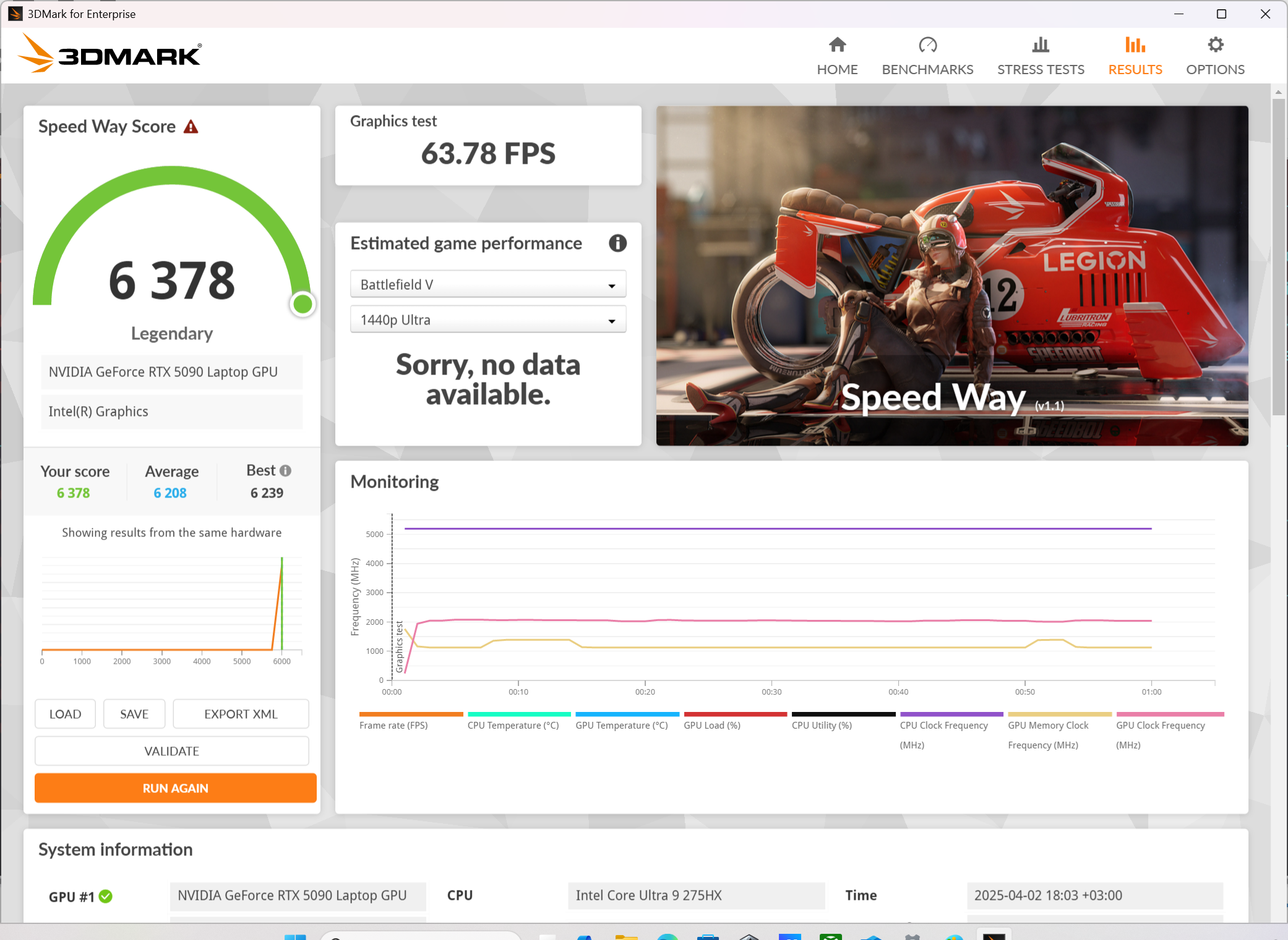 Για όσους θέλουν να κάνουν ευκολότερα συγκρίσεις με το σύστημά τους, τρέξαμε και το 3D Mark με αποτελέσματα 5838 στο Steel Nomad και 6378 στο Speedway.