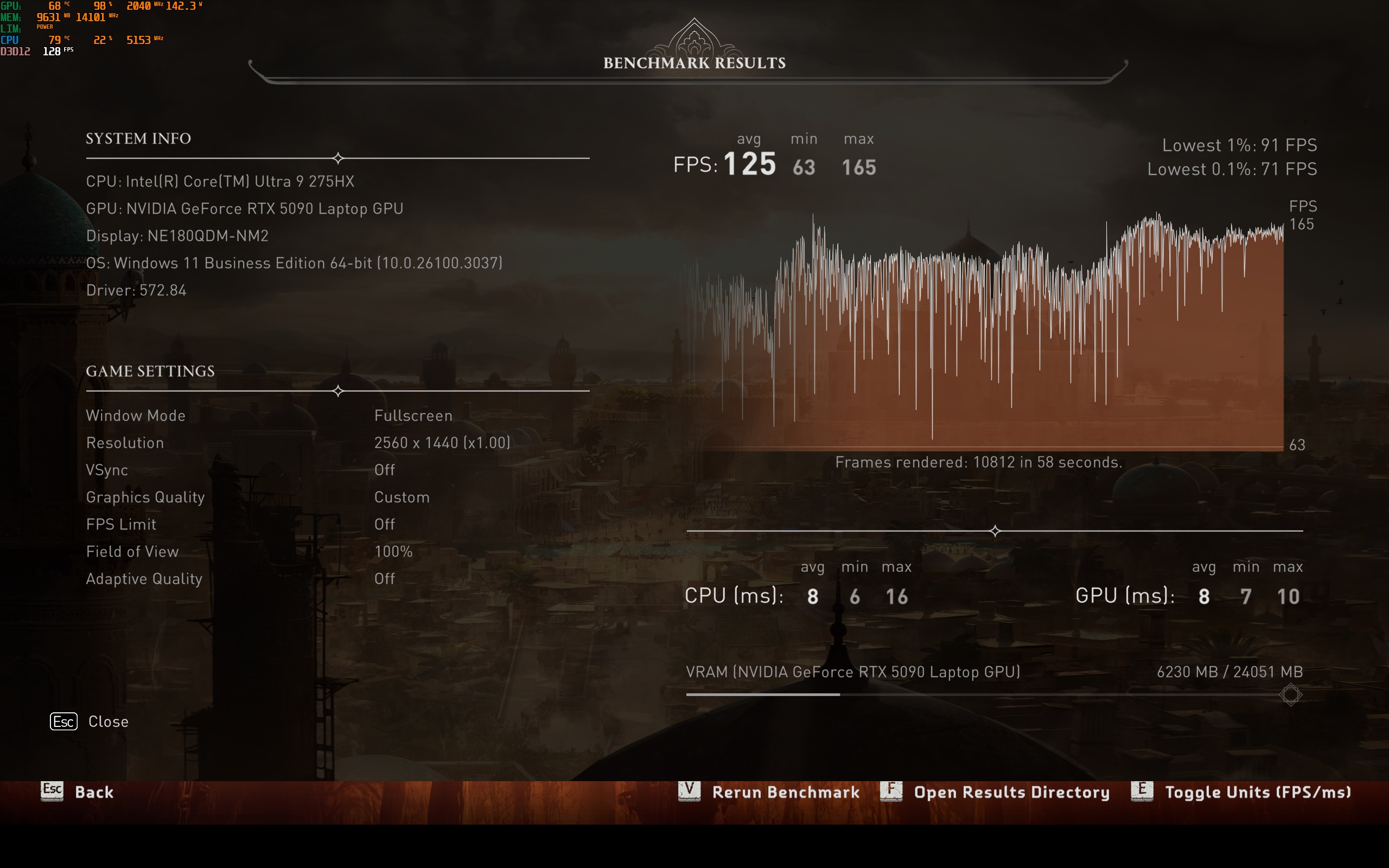 Στο Assassin’s Creed Mirage σε Ultra πήραμε 125 fps με την 5070Ti στο desktop να δίνει 140fps.