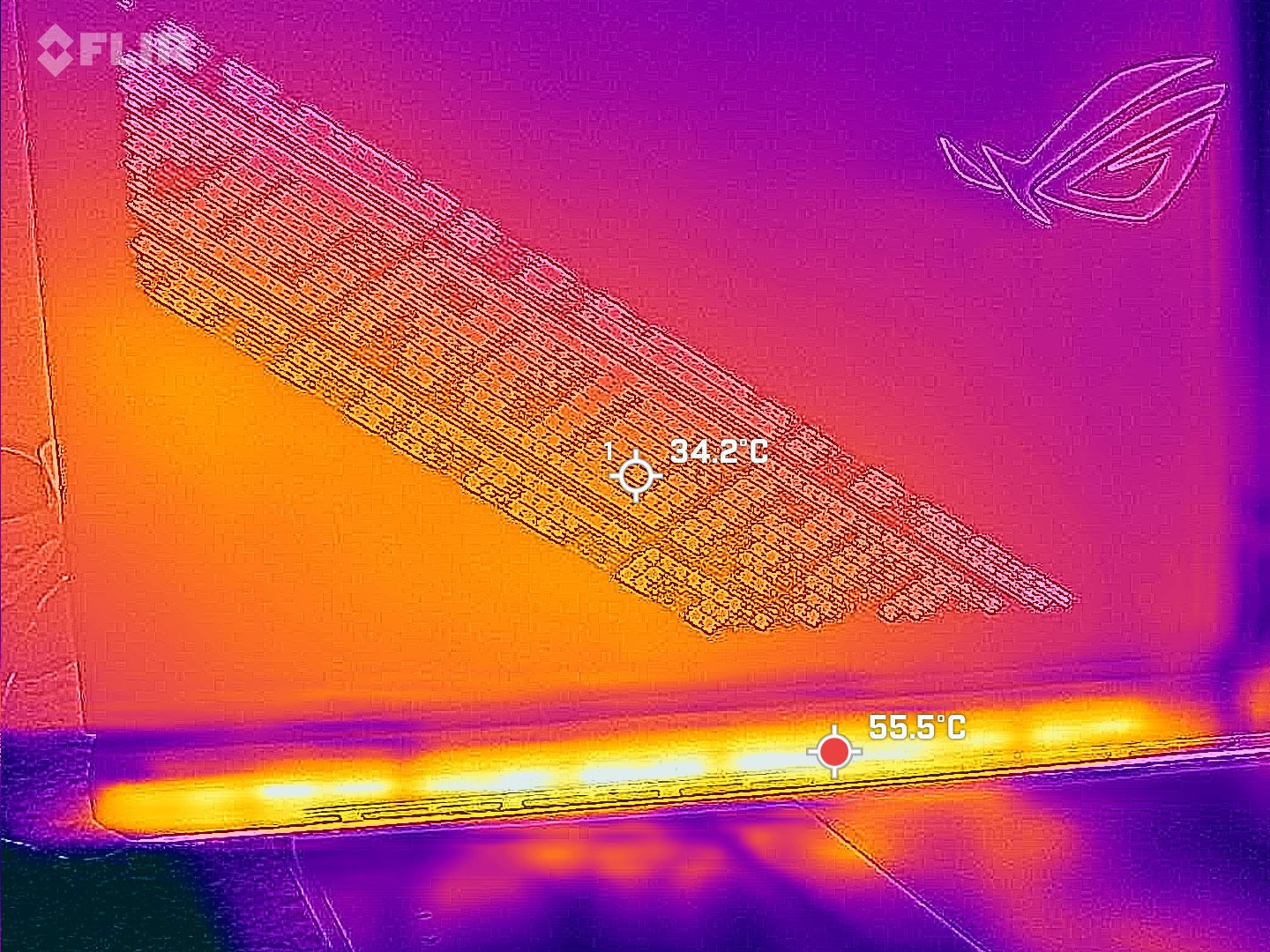 Πραγματικά εντυπωσιακή λειτουργία με την Asus να έχει κάνει όπως φαίνεται εξαιρετική δουλειά στο σύστημα ψύξης, ενώ το ίδιο το laptop σε κανένα σημείο δε το νοιώθει κανείς να ζεσταίνεται (εκτός και αν βάλει κανείς τα χέρια του στους αεραγωγούς στο πίσω μέρος ή στο πλάι, που βγαίνει ο ζεστός αέρας). Σε όλες τις επιφάνειες από τη πάνω μεριά, το laptop παραμένει άνετο να το ακουμπήσει κανείς. Ακόμα και έτσι, ο παραγόμενος θόρυβος είναι εξαιρετικά ανεκτός και σε καμία περίπτωση το σύστημα δε κάνει σαν «τρένο» που λέμε.